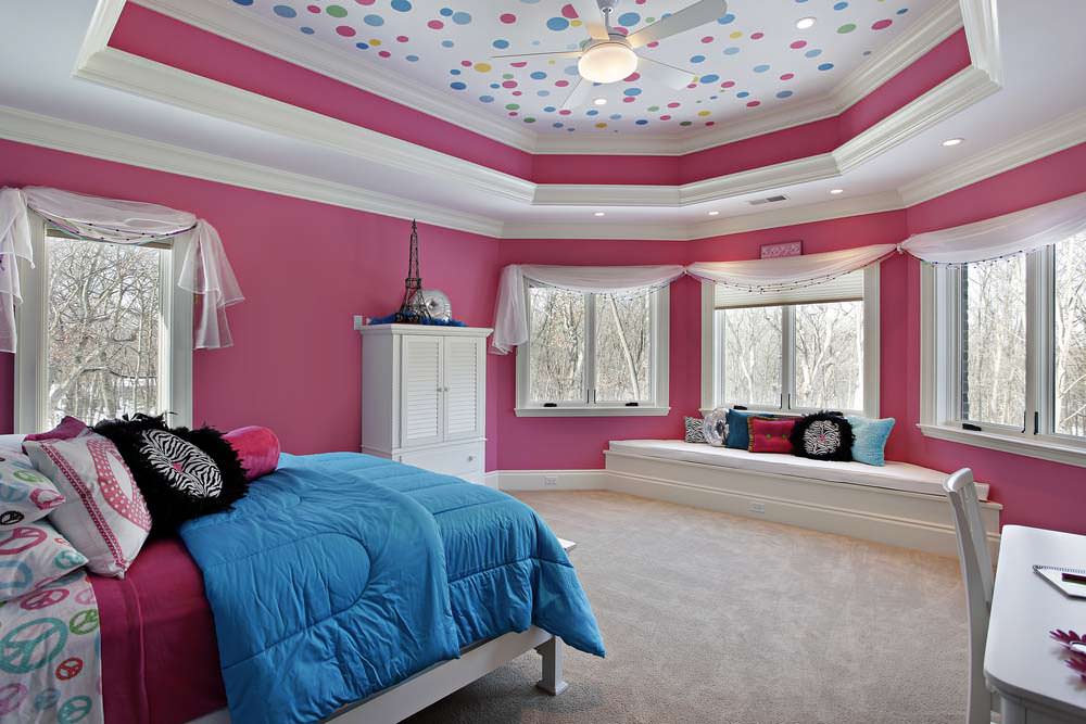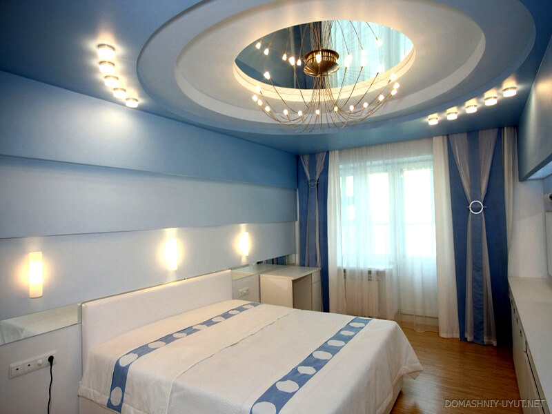 Les couleurs claires conviennent mieux à la chambre à coucher, les plafonds multicolores simuleront et n'apaiseront pas.