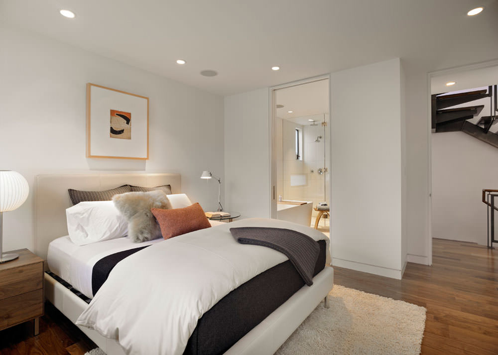 Les plafonds tendus aideront à ajouter de la lumière à la chambre, à créer une atmosphère chaleureuse.