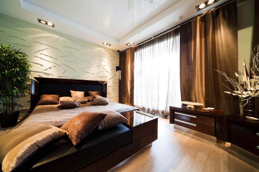 Pour la chambre, des designs dans un style classique conviennent. Tons et textures naturels sans nuances flashy.