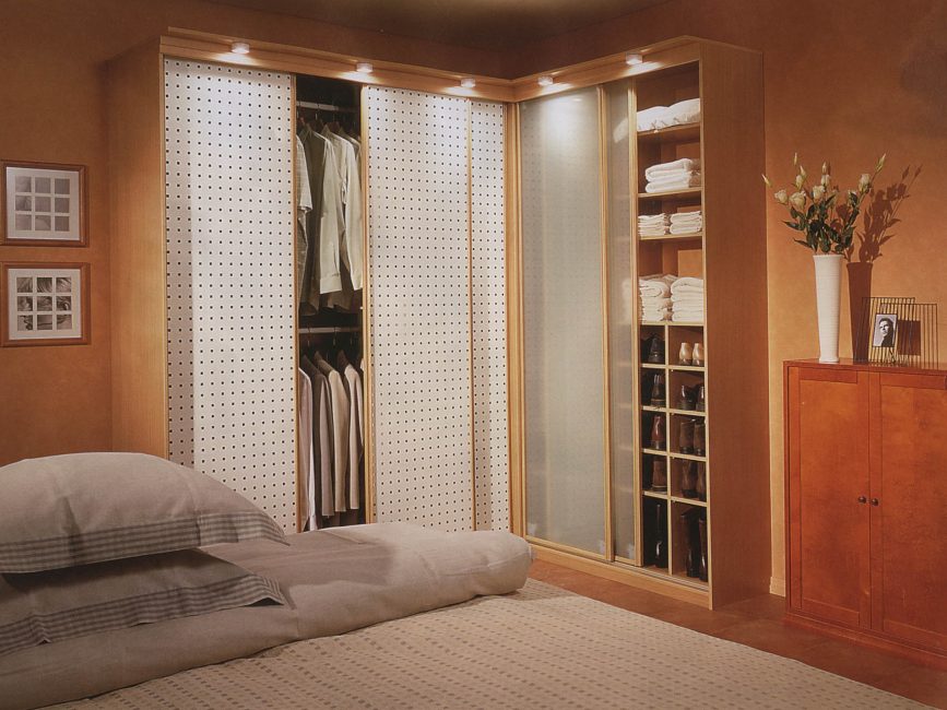 - Types, formes, tailles d'armoires d'angle dans la chambre