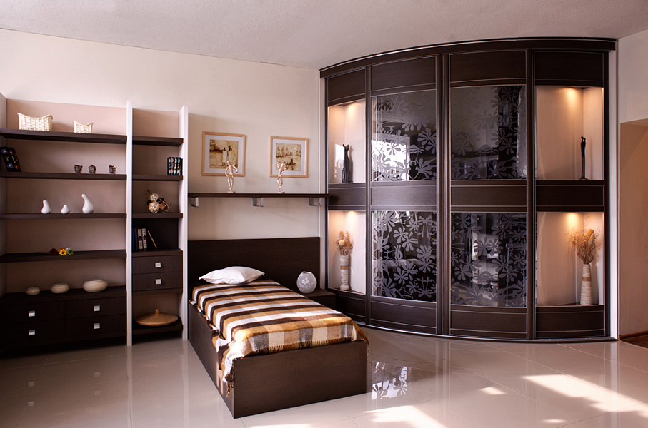 Maintenant, les concepteurs de meubles ont mis au point de nombreux modèles intéressants qui non seulement économisent de l'espace, mais aussi l'agrandissent visuellement, voire ajustent la forme de la pièce. Par exemple, la pièce est trop longue, comme une voiture de train, mais une armoire d'angle correctement placée dans la chambre résoudra ce problème et rendra la pièce plus équilibrée.