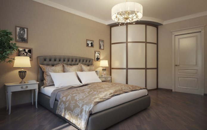La photo montrera à quoi ressemblent les armoires encastrées modernes dans la chambre à coucher.