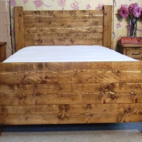 Le mur au-dessus de la tête du lit est souvent décoré de panneaux en bois naturel ou de son imitation de haute qualité.