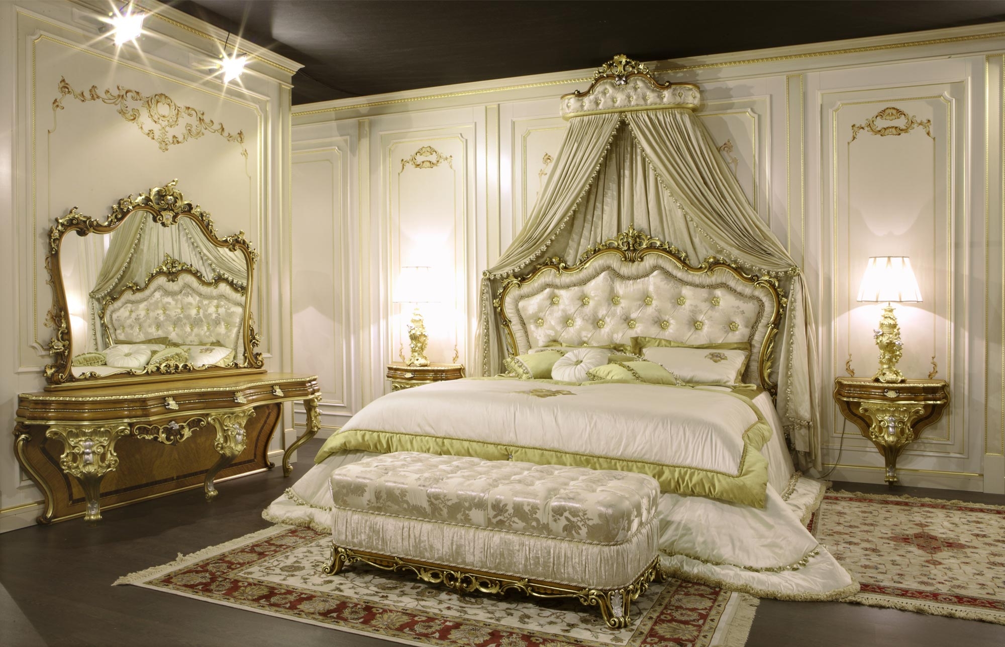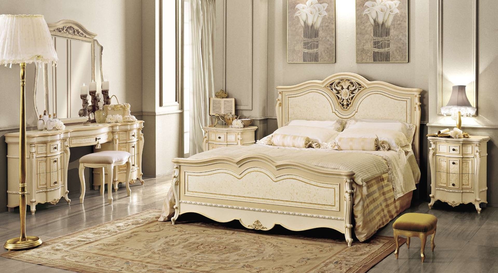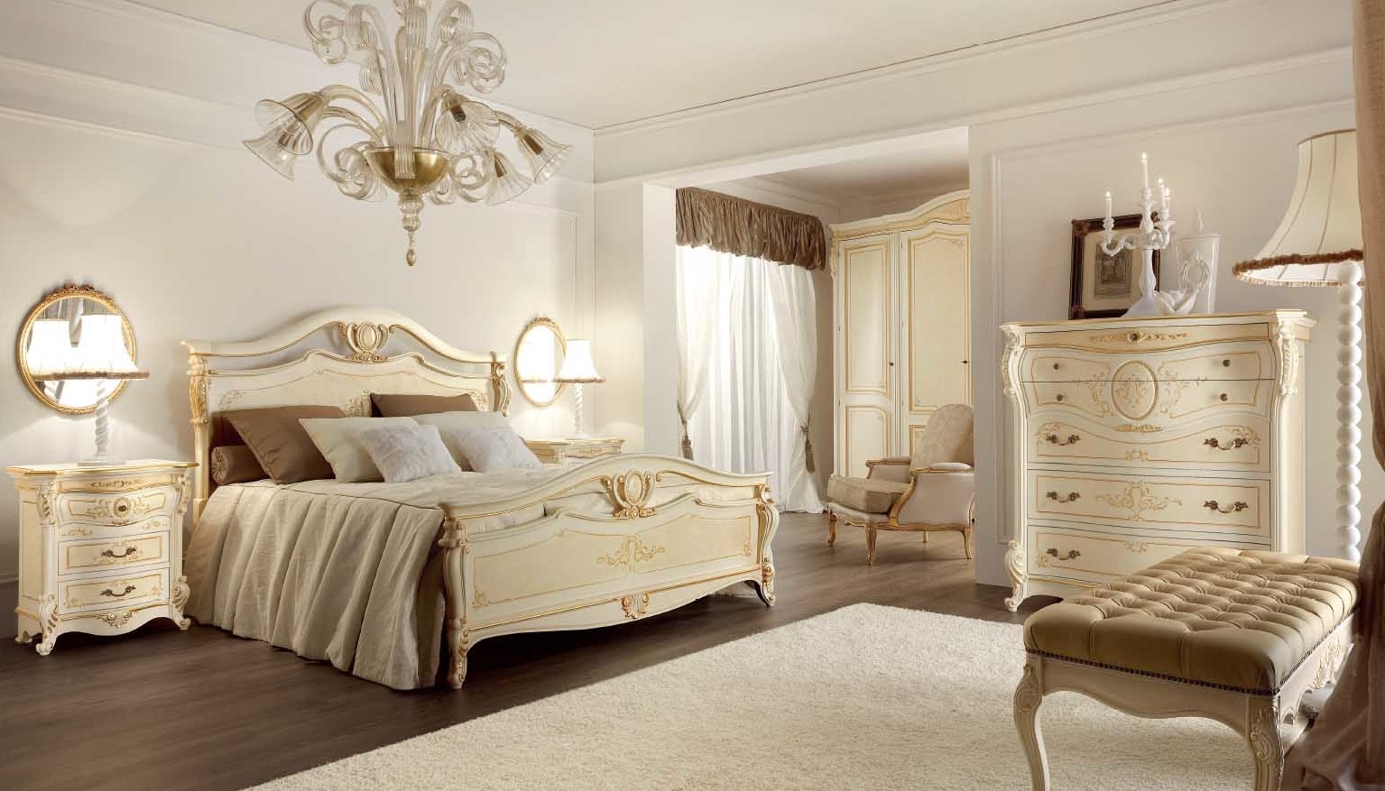 Mobilier en bois coûteux, rembourré en soie, velours, suède - une option familière à la chambre dans un style classique.