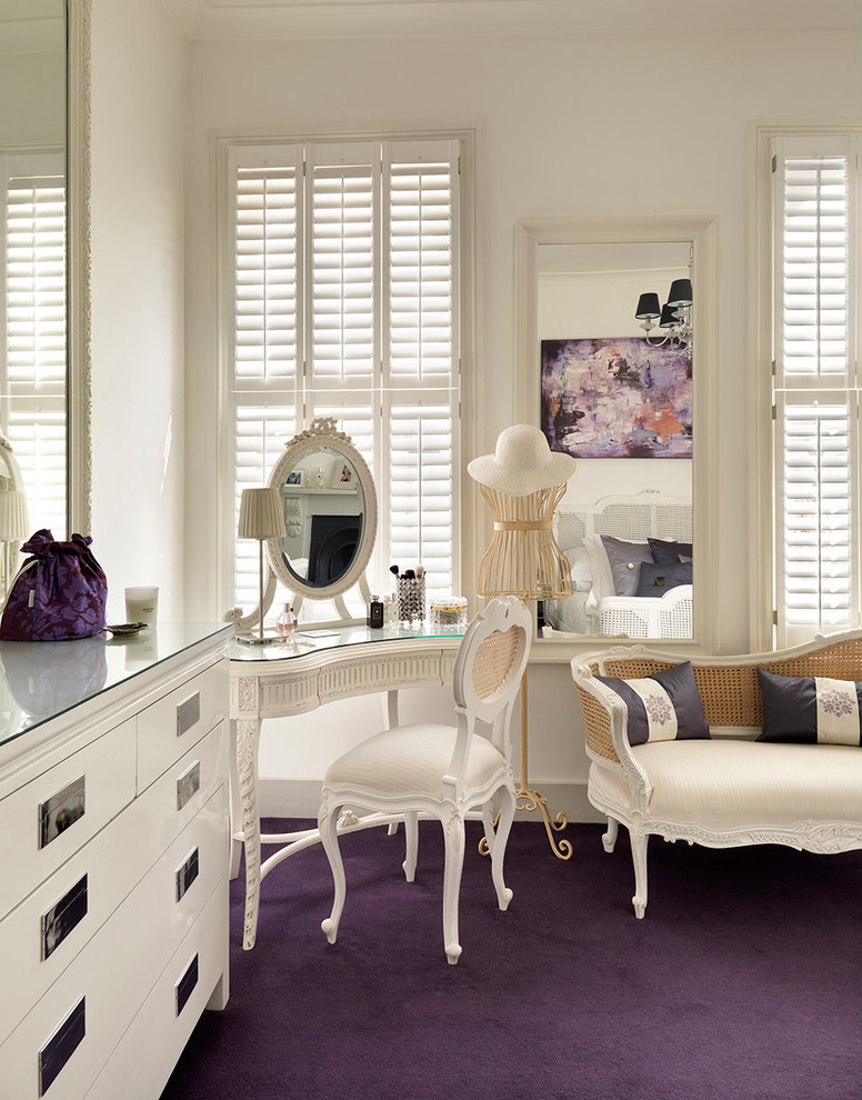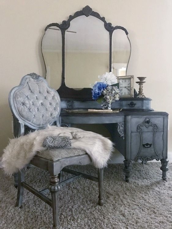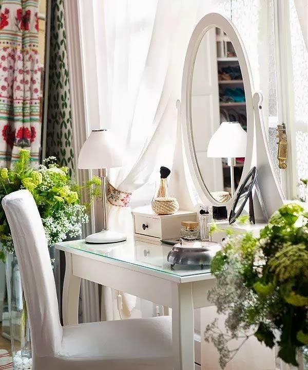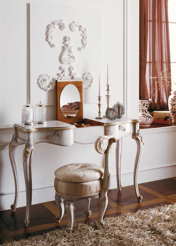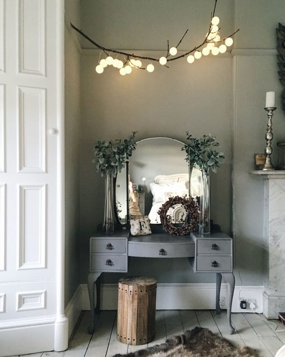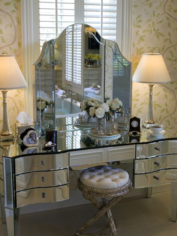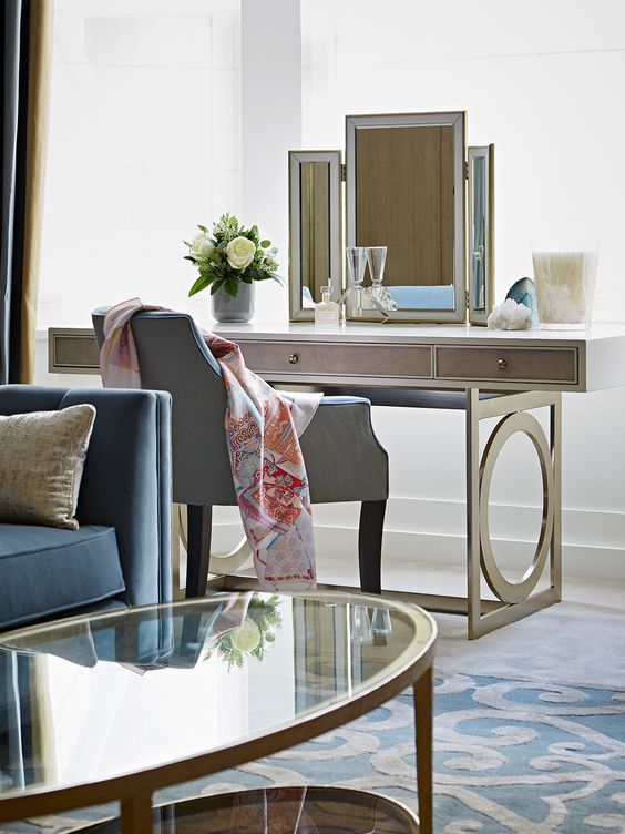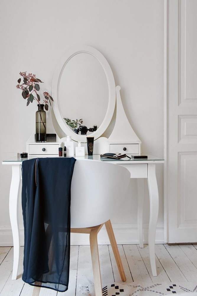 Lorsque vous choisissez une coiffeuse avec miroir, n'oubliez pas une chaise confortable, un fauteuil ou un pouf
