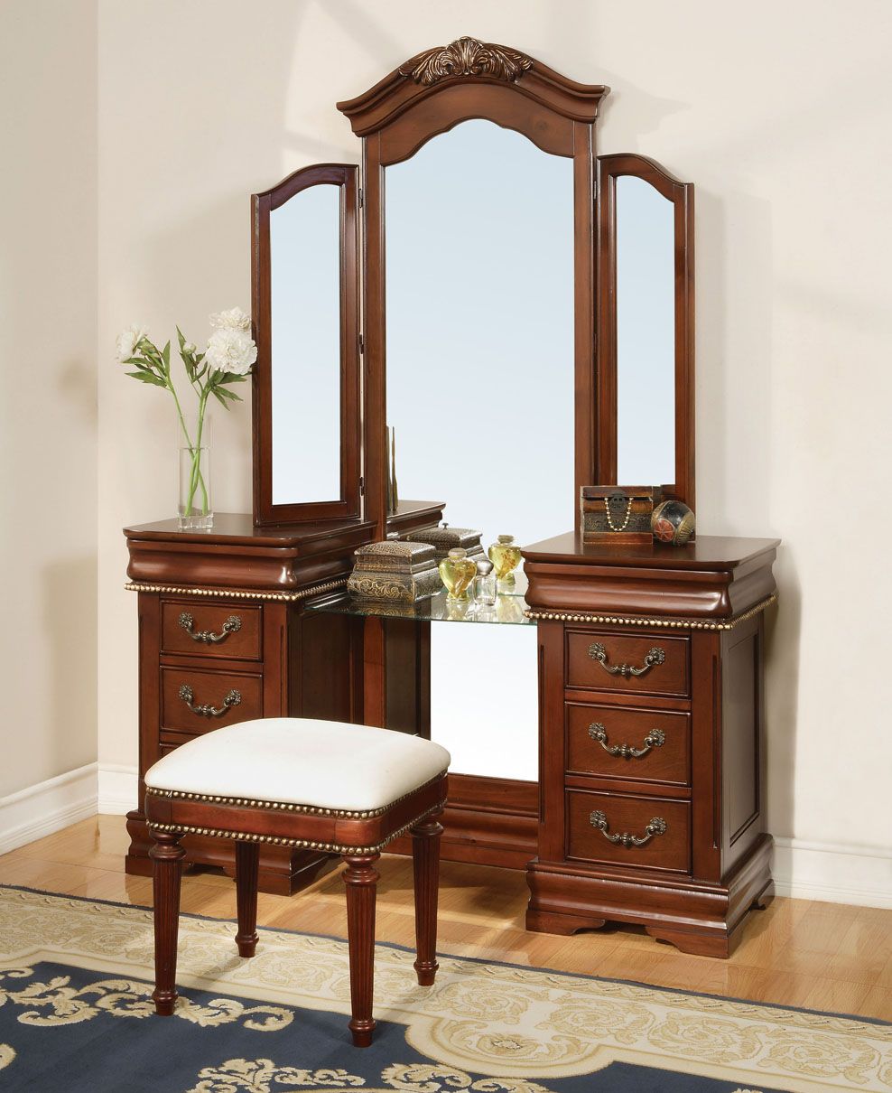 Une coiffeuse avec miroir peut être un meuble séparé ou faire partie d'un ensemble de chambre à coucher
