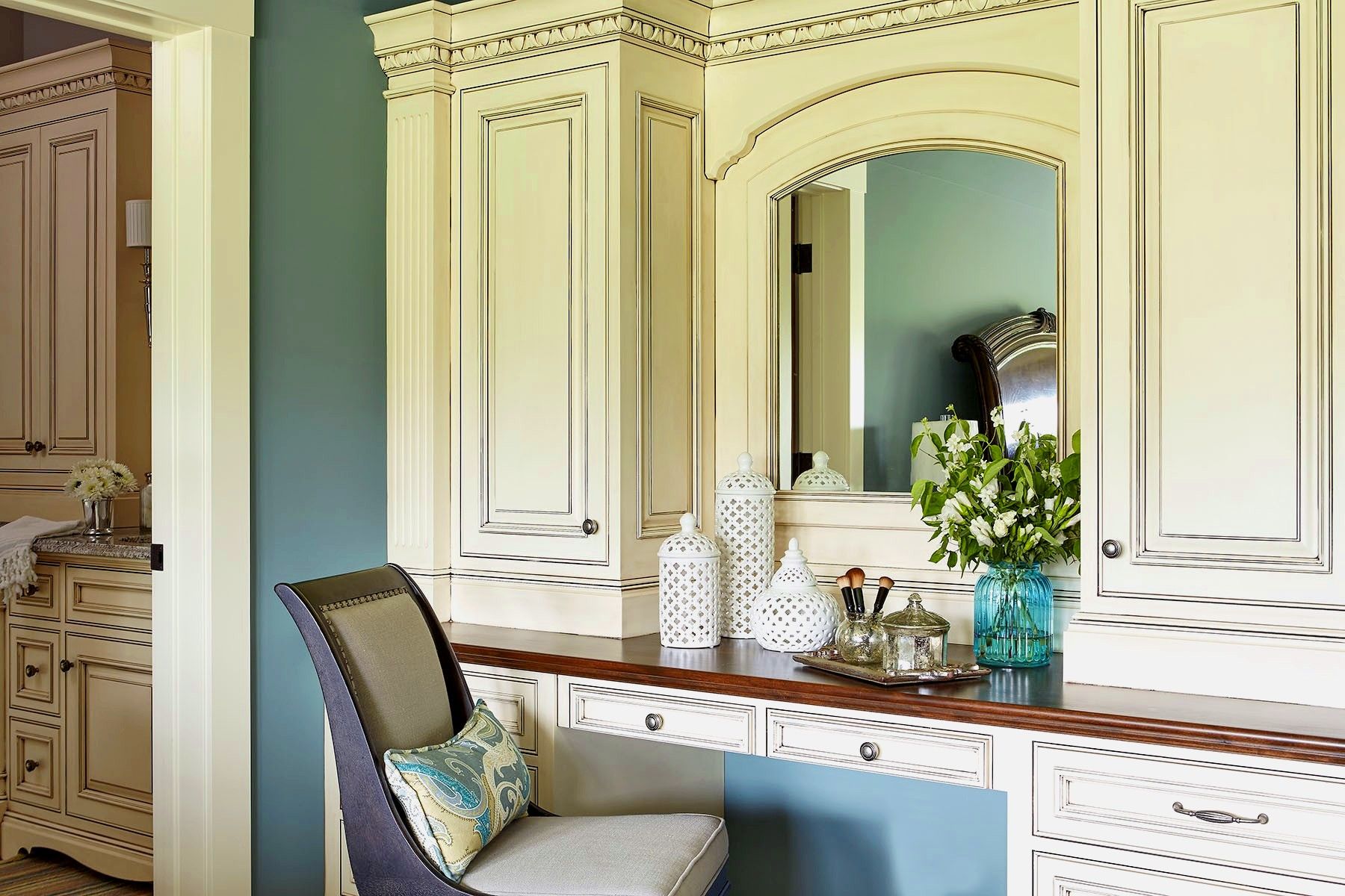 Coiffeuse ivoire classique dans la chambre d'une adolescente