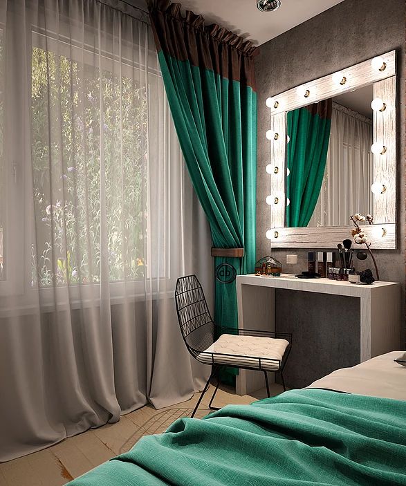 L'endroit le plus approprié pour la coiffeuse est sur le côté de la fenêtre de la chambre