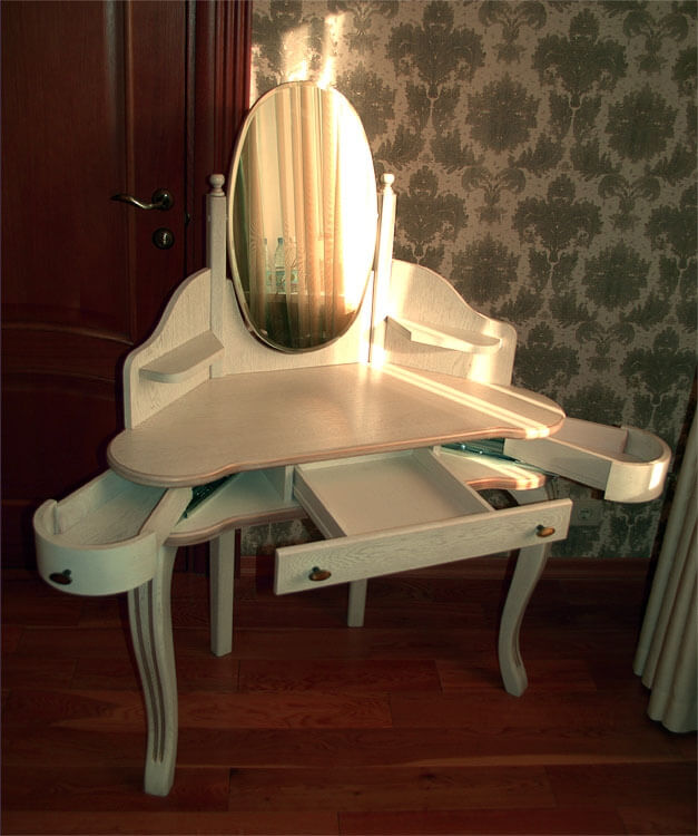 Pour une coiffeuse dans une pièce flegmatique, un style classique strict, rétro ou moderne sans fioritures conviendra.