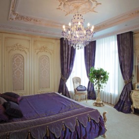 La chambre doit avoir des rideaux qui tombent au sol, décorés de glands d'or. Il peut s'agir de couleurs sombres, par exemple, bleu royal, émeraude, vin et bordeaux.