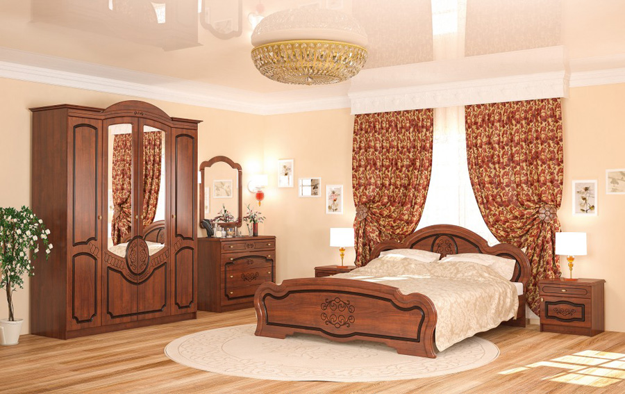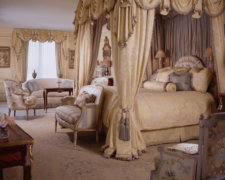 La chambre doit avoir des rideaux qui tombent au sol, décorés de glands d'or. Il peut s'agir de couleurs sombres, par exemple, bleu royal, émeraude, vin et bordeaux.