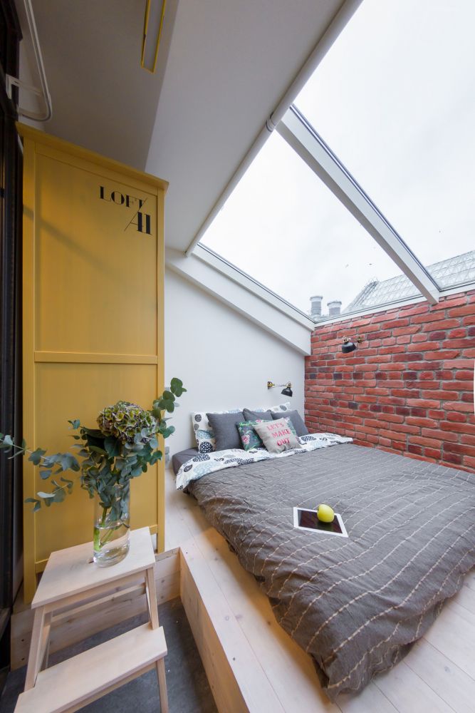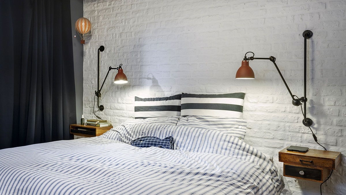 - Jeux de couleurs pour une petite chambre dans le style loft
