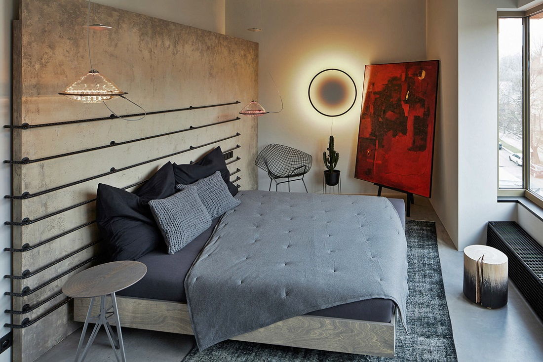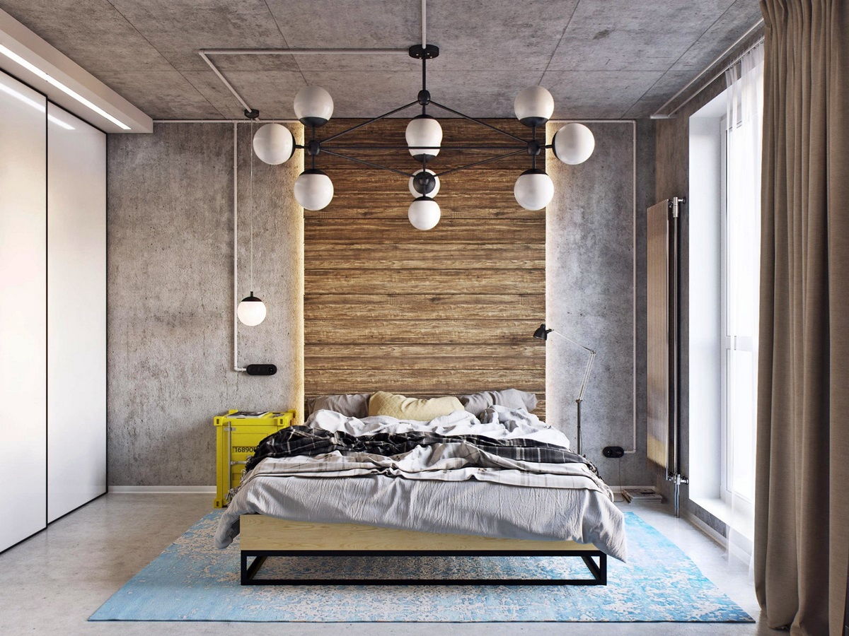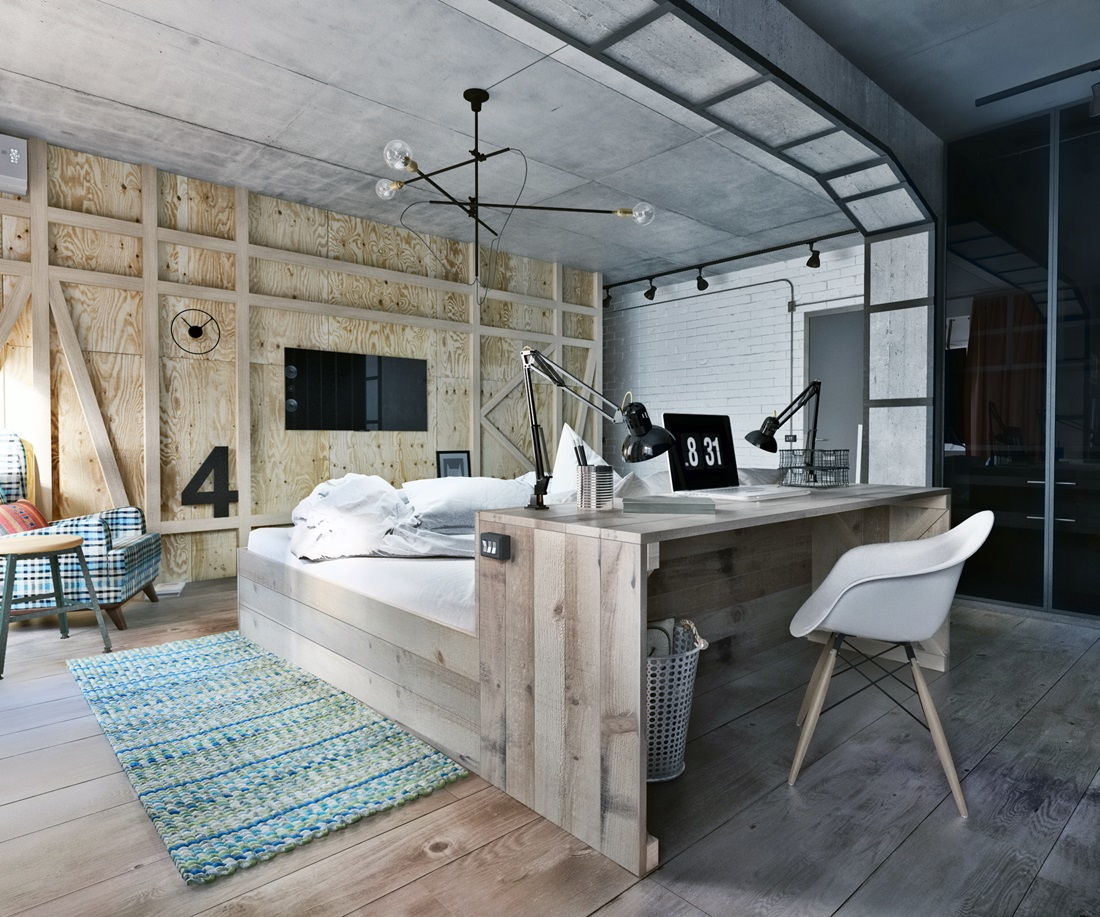Une chambre de style loft moderne et pratique est une combinaison mutuellement avantageuse de minimalisme et de tendances industrielles.