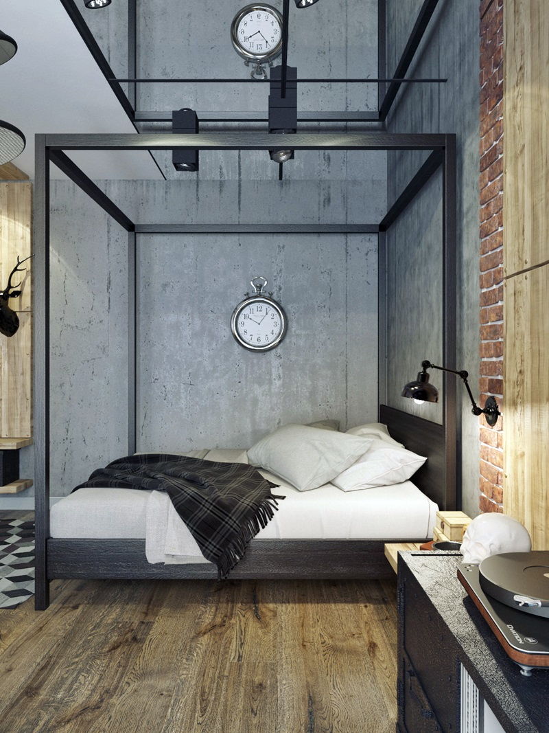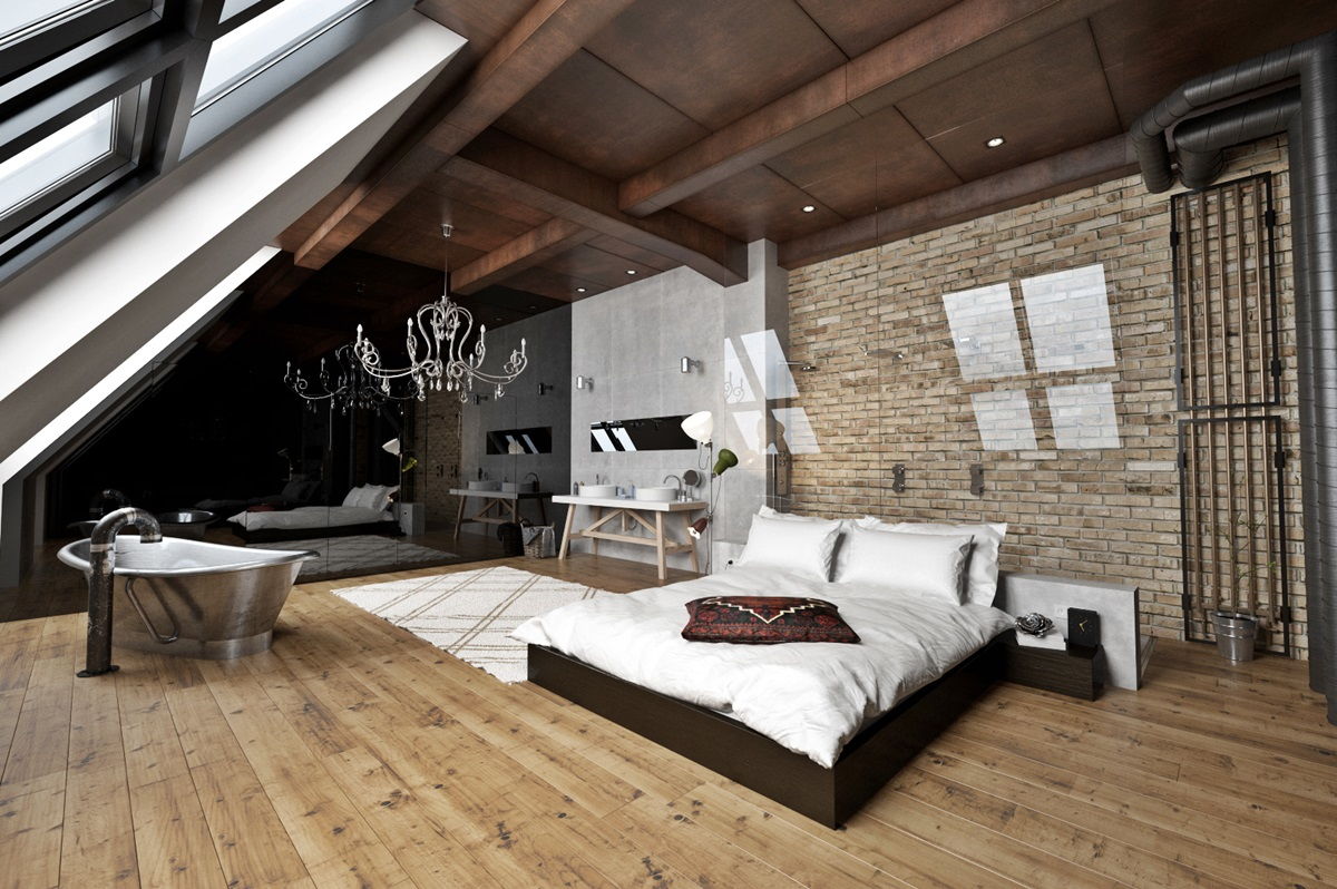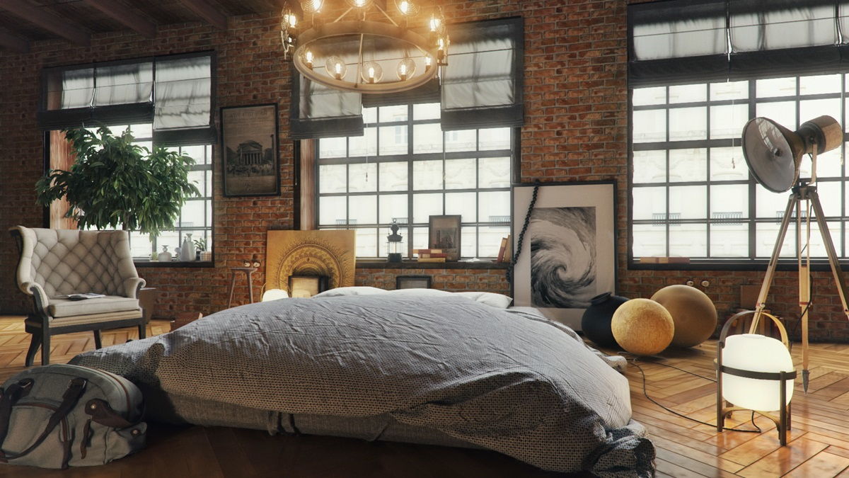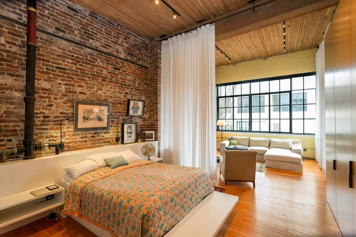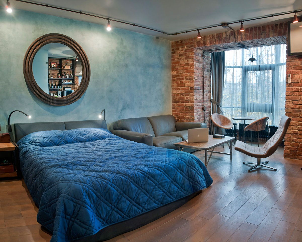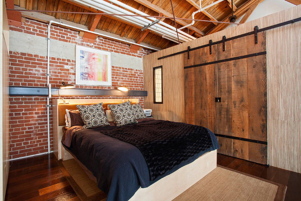 Le design original de la chambre dans le style loft convient à la décoration des chambres masculines et féminines.