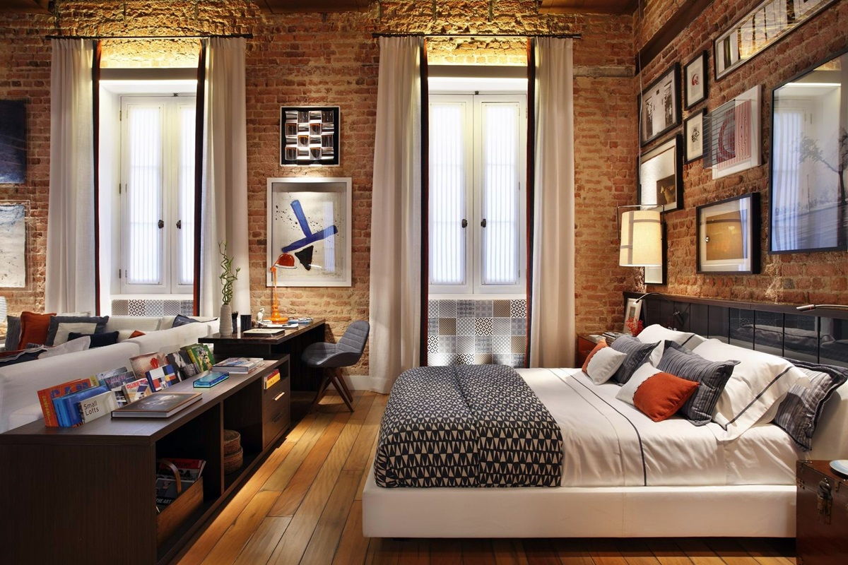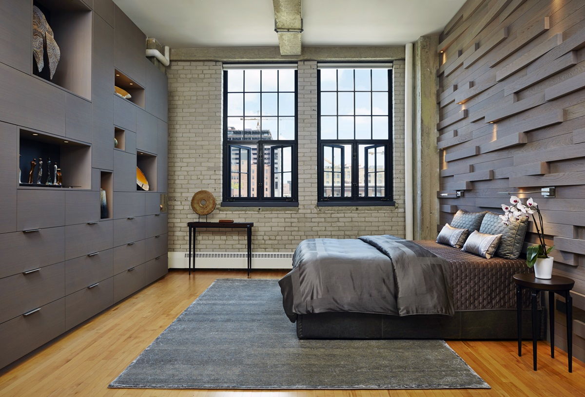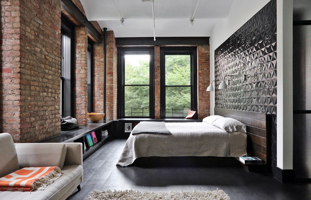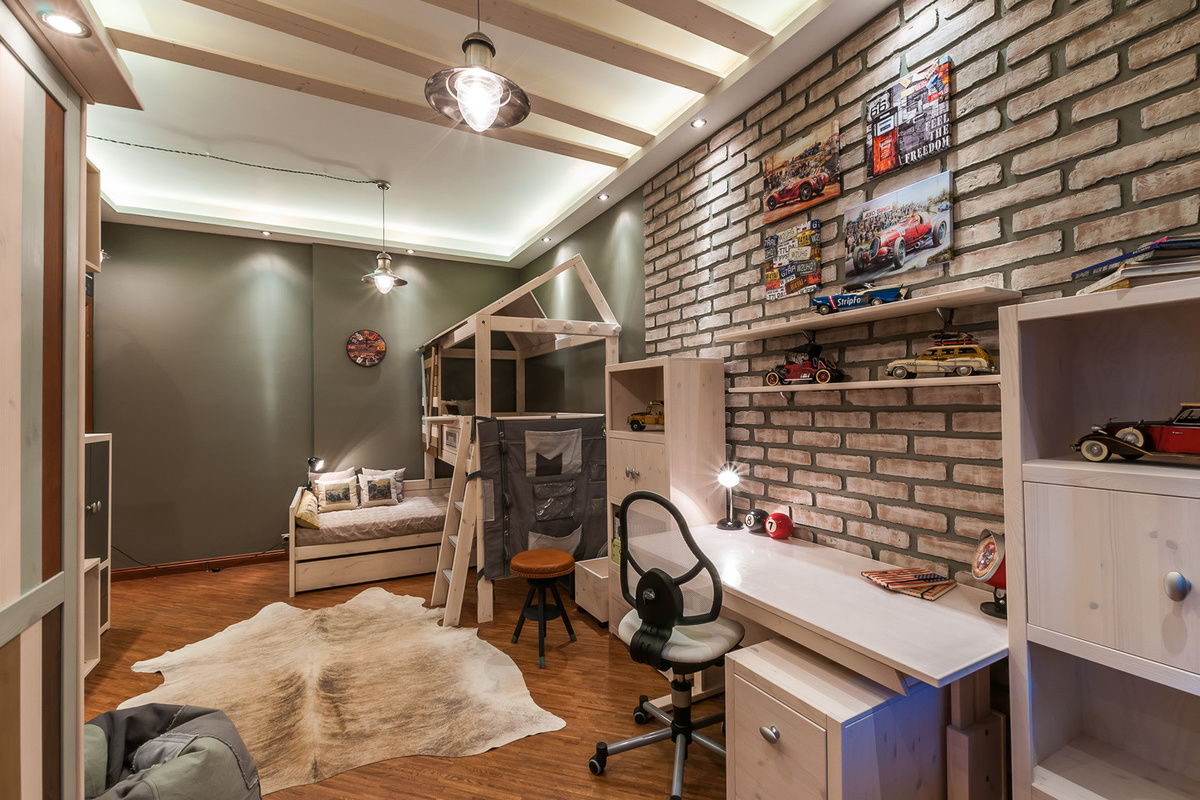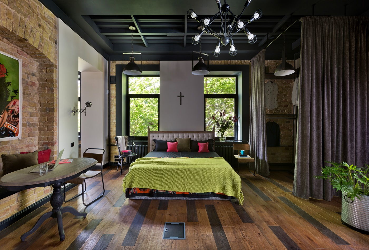 Le design original de la chambre dans le style loft convient à la décoration des chambres masculines et féminines.