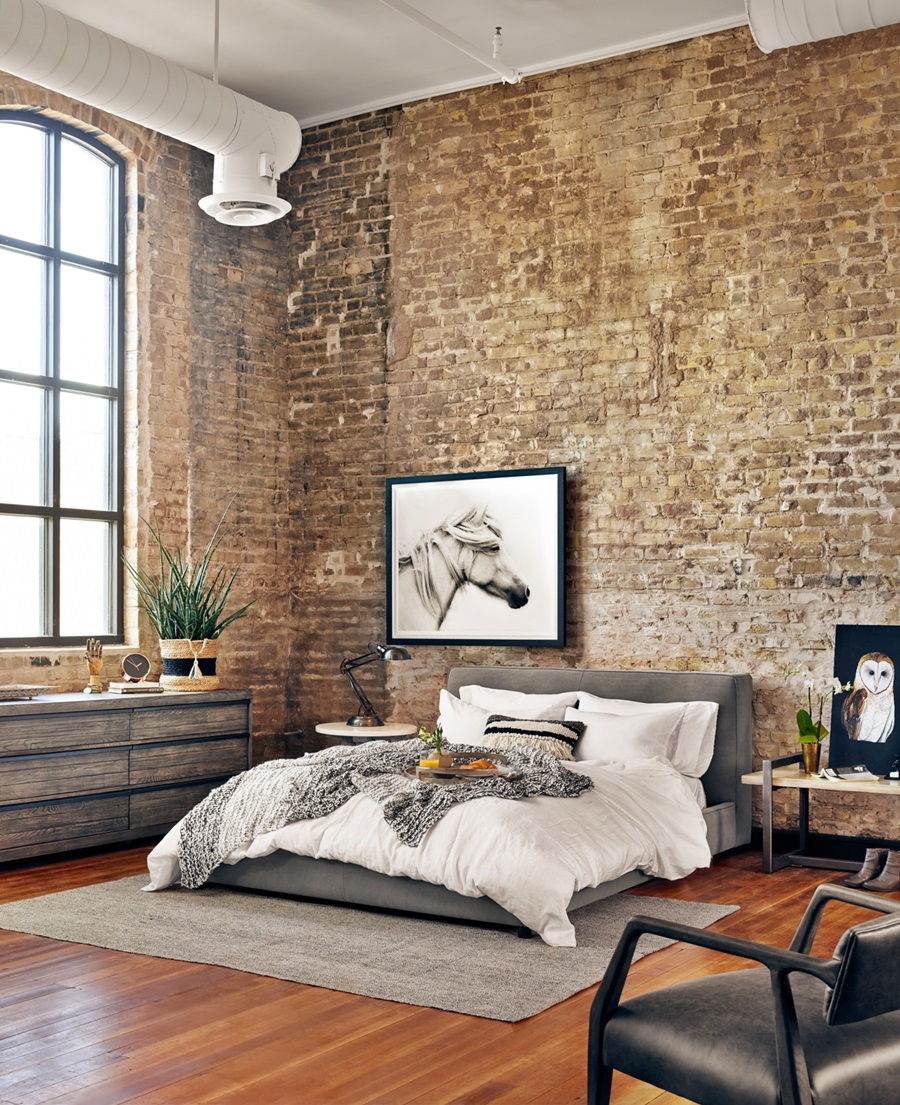 Les espaces blanchis à la chaux semblent toujours plus ouverts, donc appliquer une texture blanche aux murs de la chambre est un excellent moyen de lui donner un aspect plus spacieux. Une brique ouverte est presque synonyme de loft, donnant à de nombreuses chambres une texture minable. Plus il y a de copeaux dans la peinture, mieux c'est.
