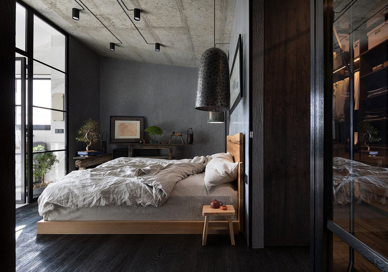 - Mobilier et détails décoratifs pour la chambre dans le style loft de l'appartement