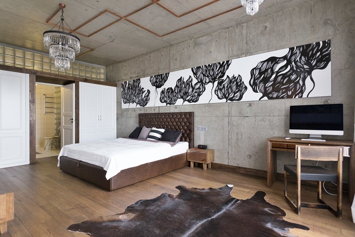 Il est très important qu'un tel intérieur soit conçu avec la bonne atmosphère. Ceci est réalisé grâce à une approche spéciale pour travailler avec l'espace. Il faut utiliser ce qui existe déjà. S'il y a des sols en béton non traités et des tuyaux ouverts, cela vaut la peine de les utiliser.