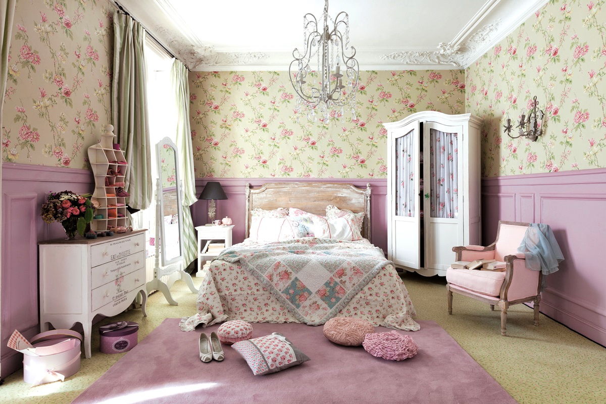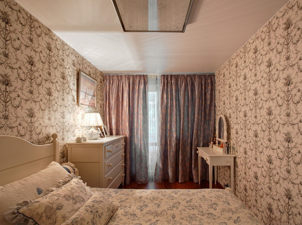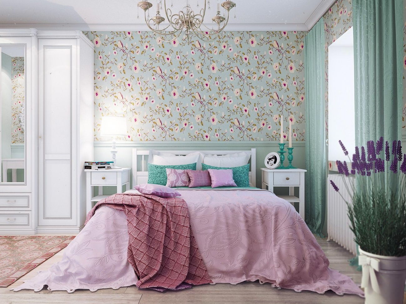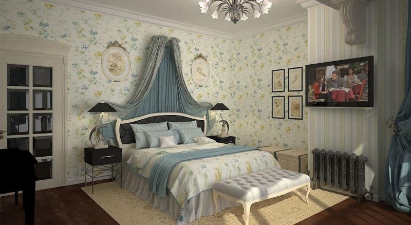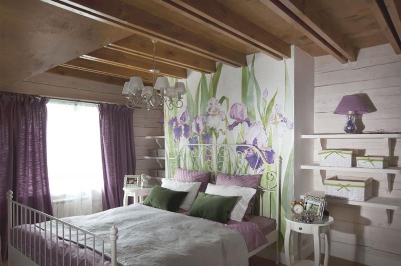 Le papier peint en Provence est une tendance assez nouvelle, mais s'ils ont un léger imprimé floral, alors pourquoi pas. De jolis bouquets ou des scènes de la vie pastorale apporteront des notes de romantisme dans la chambre.