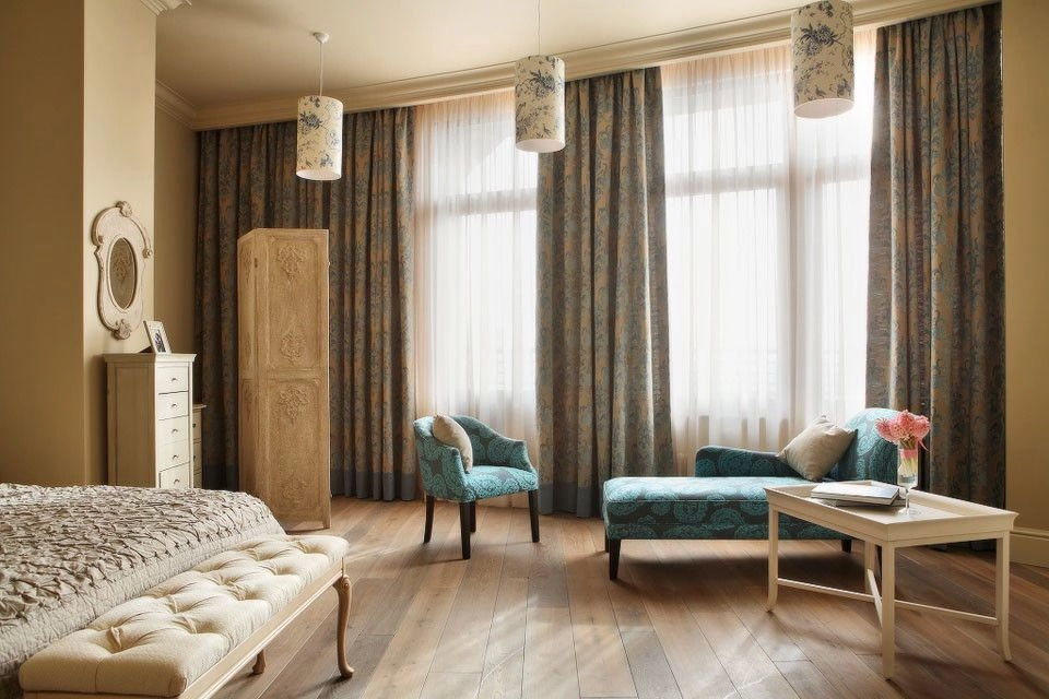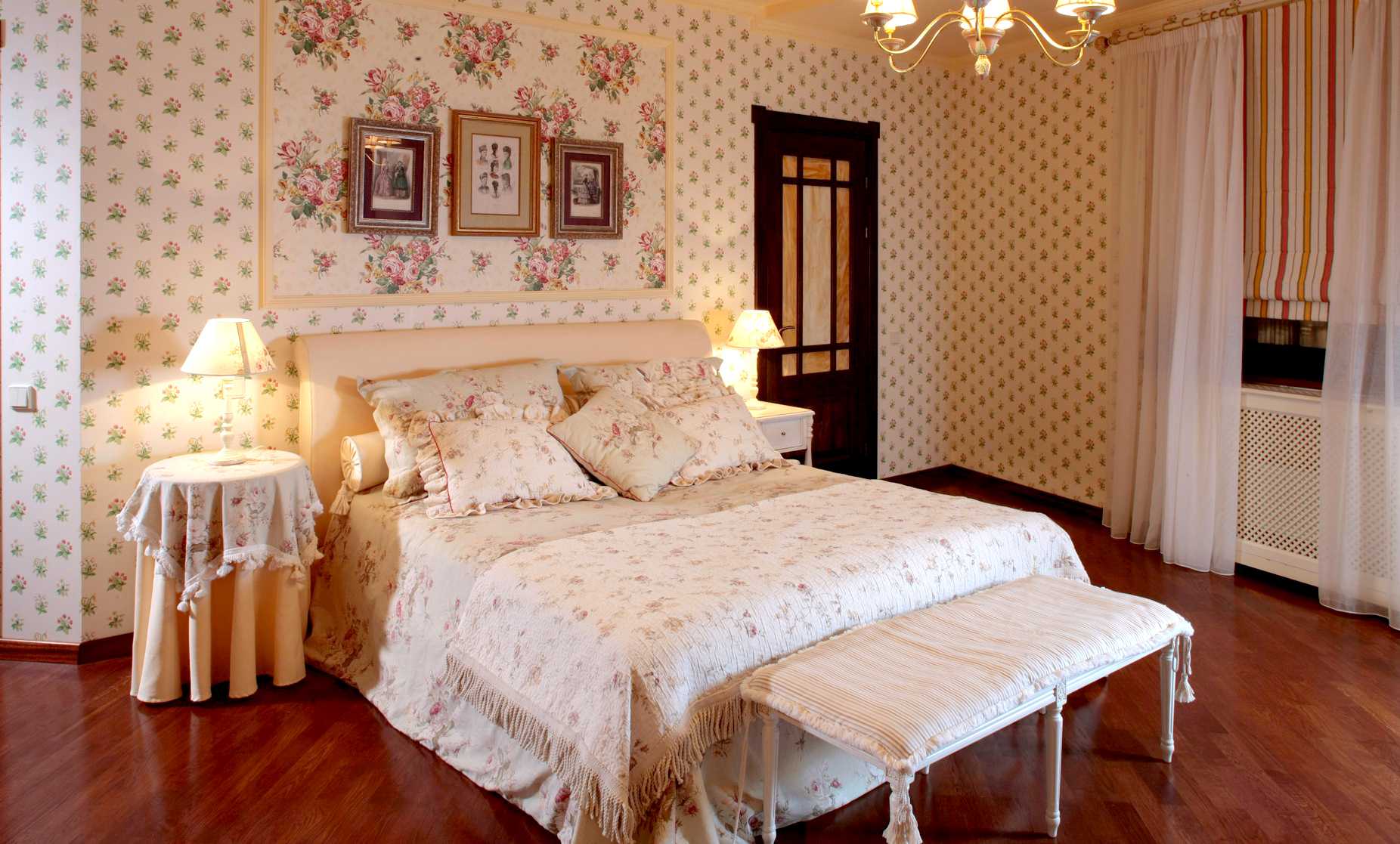 Dans la chambre rustique française, vous ne verrez pas de produits en plastique, moquette, polyuréthane.
