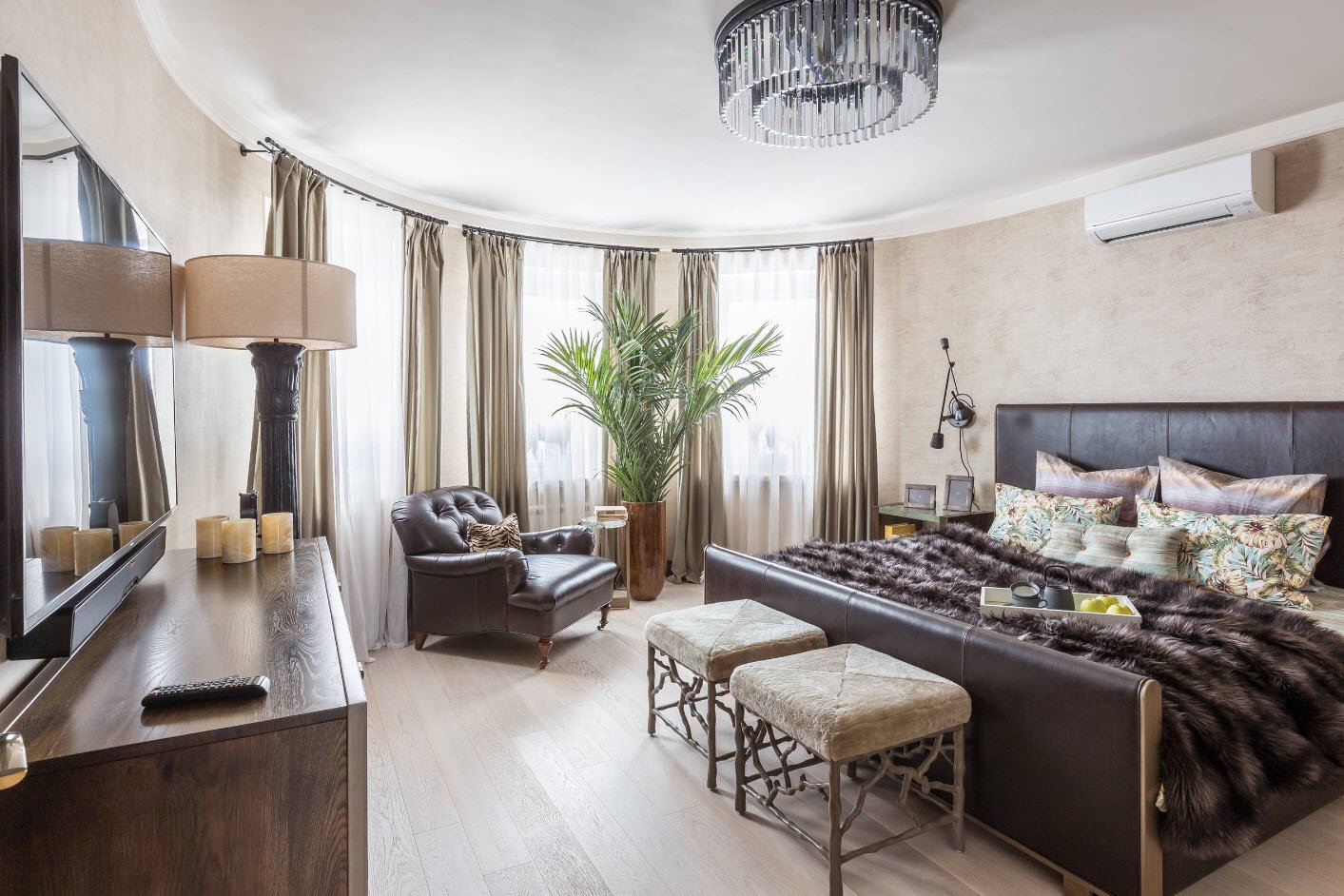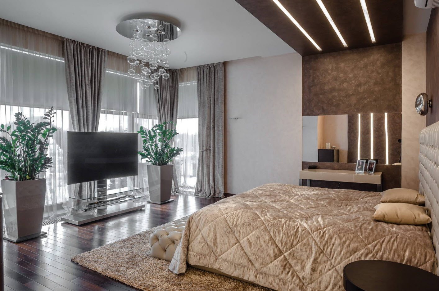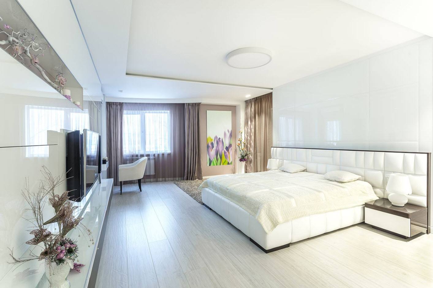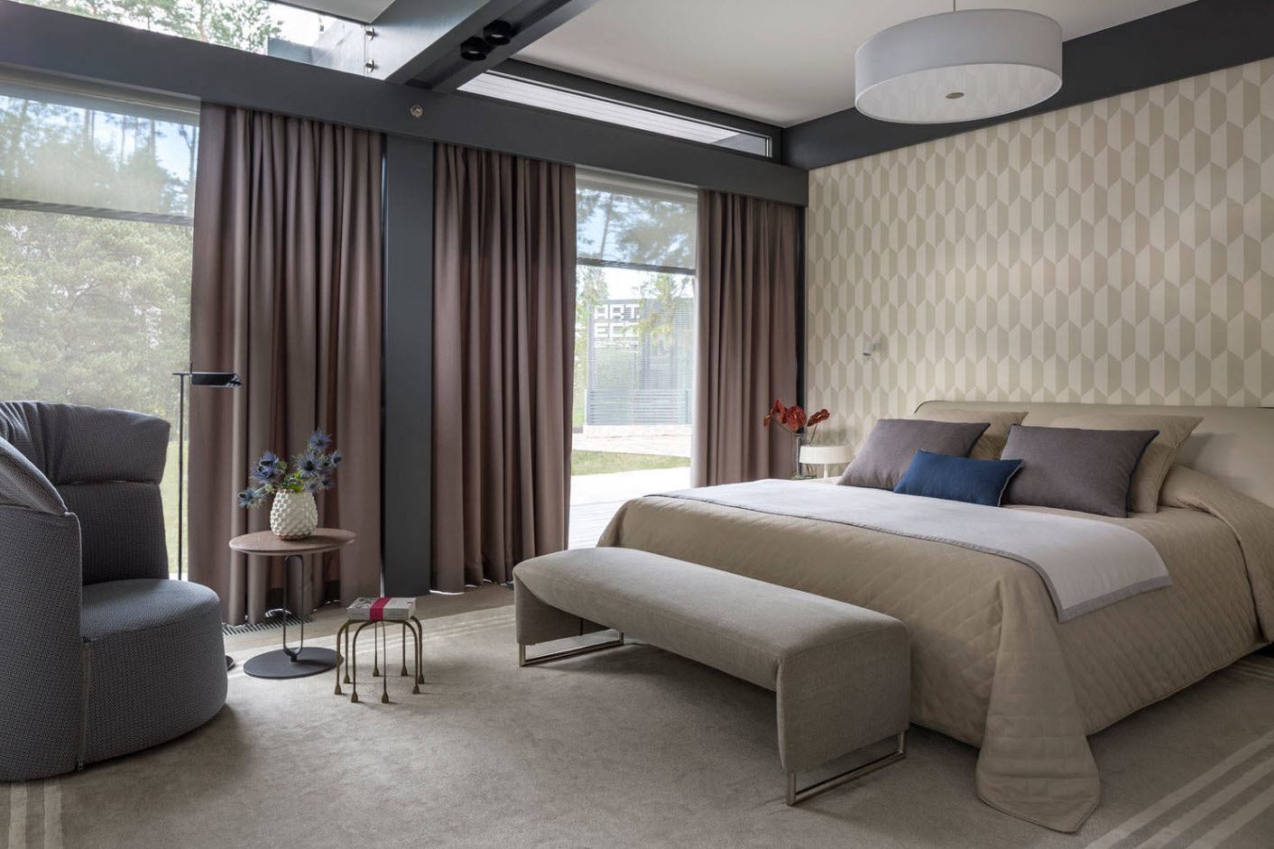 Une grande et spacieuse chambre est un vrai luxe, qui n'est pas disponible dans les appartements standard. Dans certains cas, vous pouvez combiner les deux pièces pour obtenir plus d'espace pour la chambre. Les professionnels du design d'intérieur savent équiper une chambre spacieuse avec style.