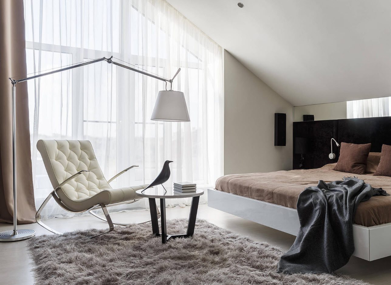 Lors de la conception et de l'aménagement, il est important de se souvenir non seulement de la fonctionnalité, mais aussi de l'esthétique. Aujourd'hui, la plupart des designers abandonnent l'idée de disposer des meubles autour de la pièce. Pour donner à l'intérieur un aspect moderne, vous devez suivre les conseils d'experts. Placez le lit au milieu de la pièce parallèlement à la fenêtre et poussez-le pour placer une armoire, une commode, une coiffeuse, des fauteuils ou un miroir au sol.