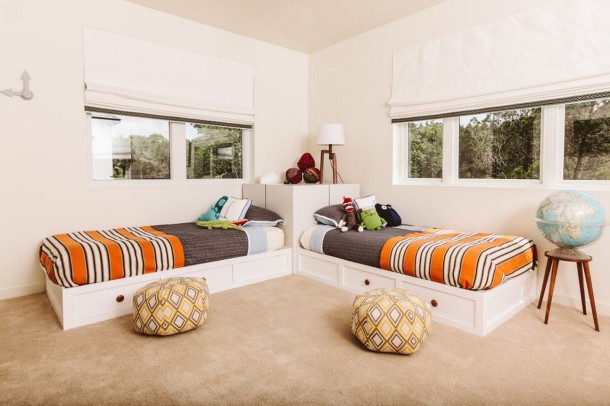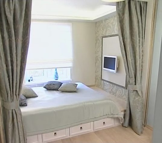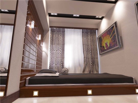 L'idée d'organiser un lit près de la fenêtre dans la chambre est la conception d'un tel arrangement et l'idée de conception vient à beaucoup. Les films étrangers, dans lesquels un tel arrangement est souvent trouvé, jouent un rôle important dans cette décision.