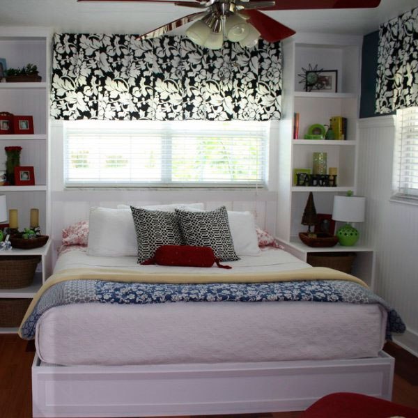 Que faire si la tête de lit est un lit dans la chambre près de la fenêtre? Lorsque la disposition de la pièce n'implique pas une disposition différente de la chambre à coucher, par exemple, si la pièce est très grande ou trop petite, lorsqu'elle est d'une disposition complexe non standard, ou qu'il se trouve que votre choix s'est porté sur cette disposition, faites attention à ceci: