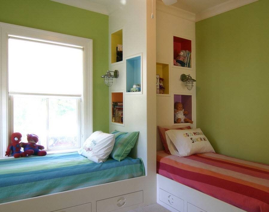Peut-être le seul inconvénient de cet arrangement sera l'incapacité d'approcher la boîte des deux côtés. Mais dans ce cas, il existe un moyen de sortir: vous pouvez simplement placer un lit double à une distance suffisante de la fenêtre pour pouvoir l'approcher des deux côtés. Pour un single, un tel moment peut difficilement être considéré comme un inconvénient.