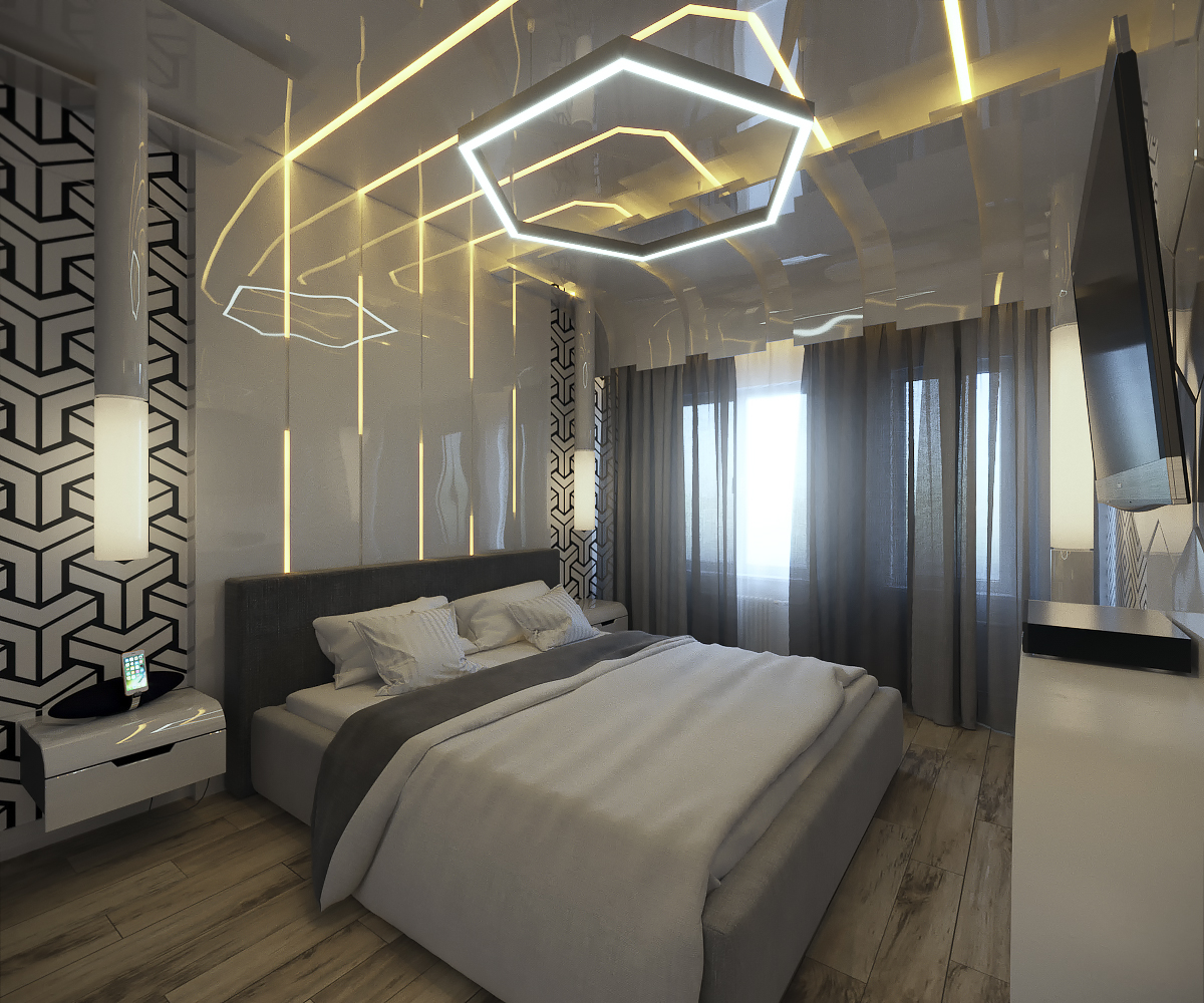 Design impressionnant des appliques murales dans une chambre de style futuriste
