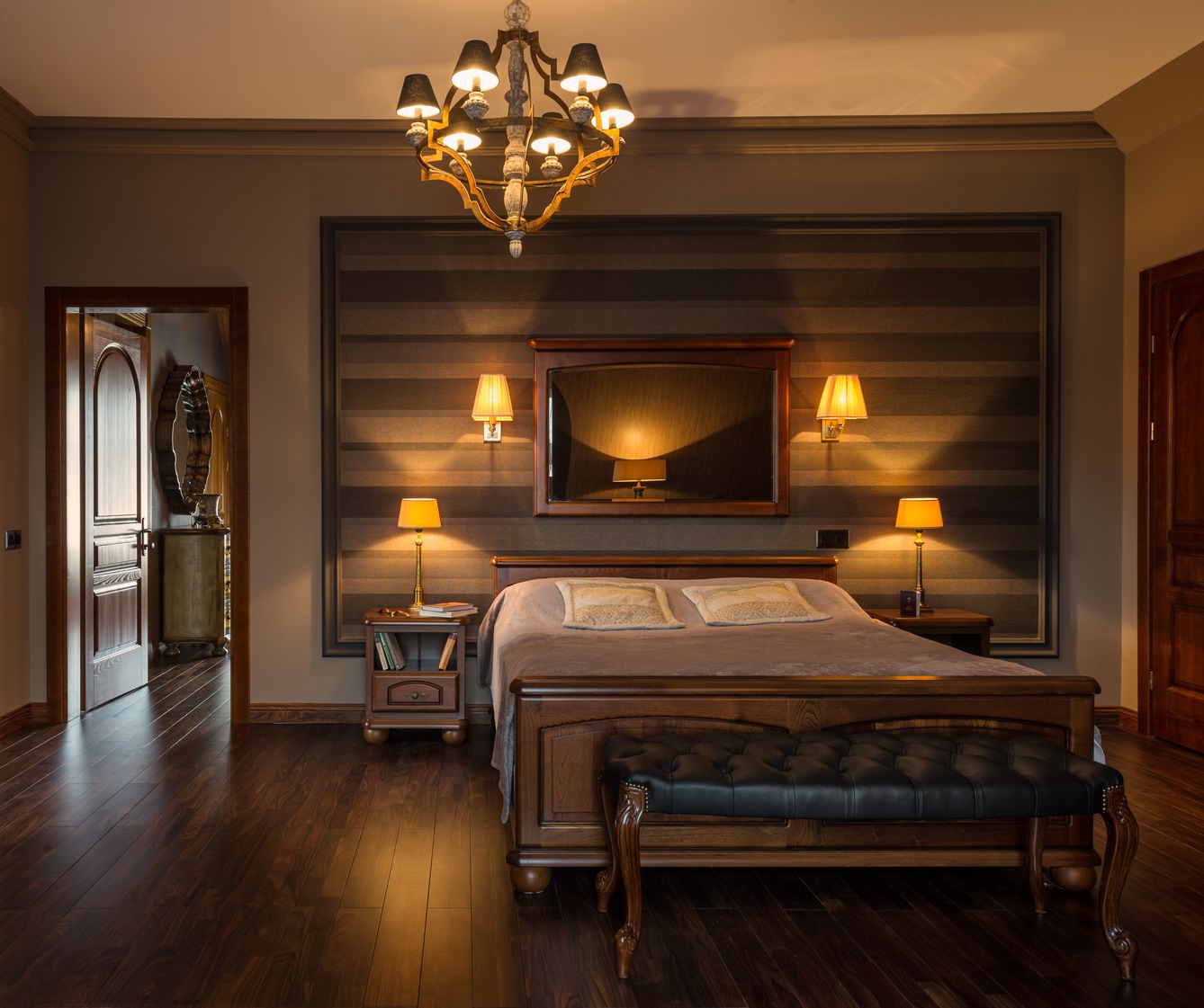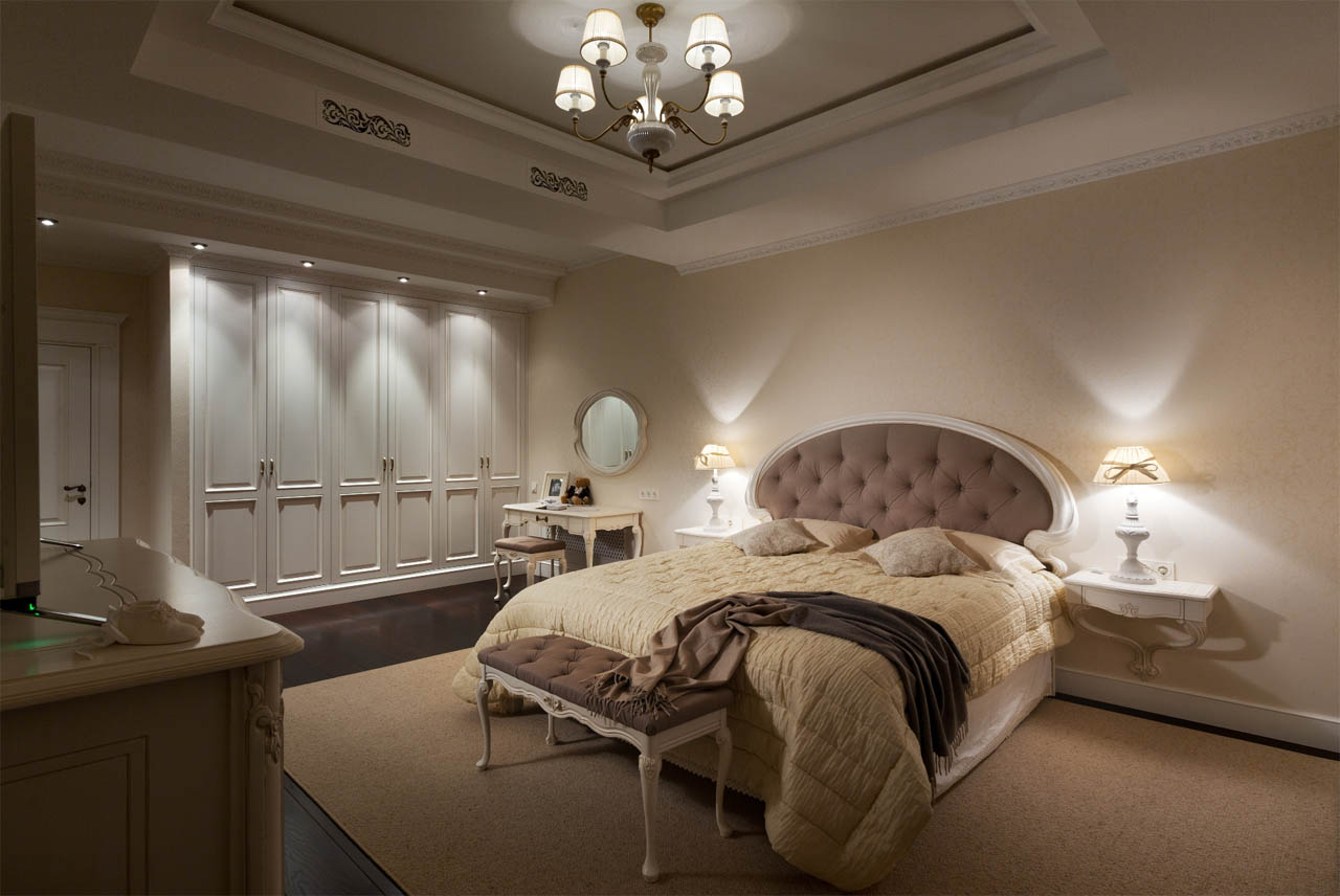Mise en œuvre élégante de l'éclairage nocturne dans une chambre de style classique