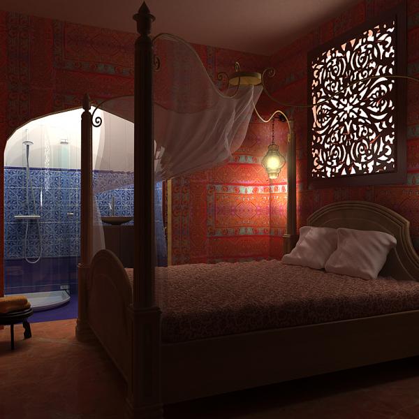 Donc, si la chambre est décorée dans un style oriental, vous pouvez utiliser une lampe de nuit avec des pendentifs en cristal ou en verre. Une lampe de table avec un bel abat-jour en verre élégant aura fière allure. La conception de la chambre "orientale" peut être différente, mais le plus souvent, les concepteurs utilisent des chandeliers simulés et des lampes originales avec des pendentifs.