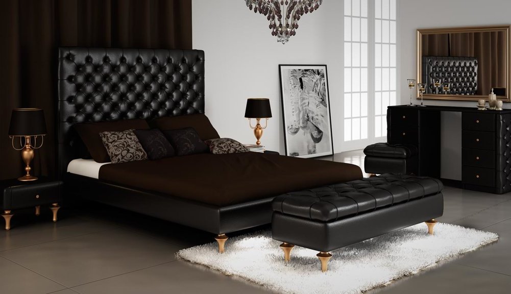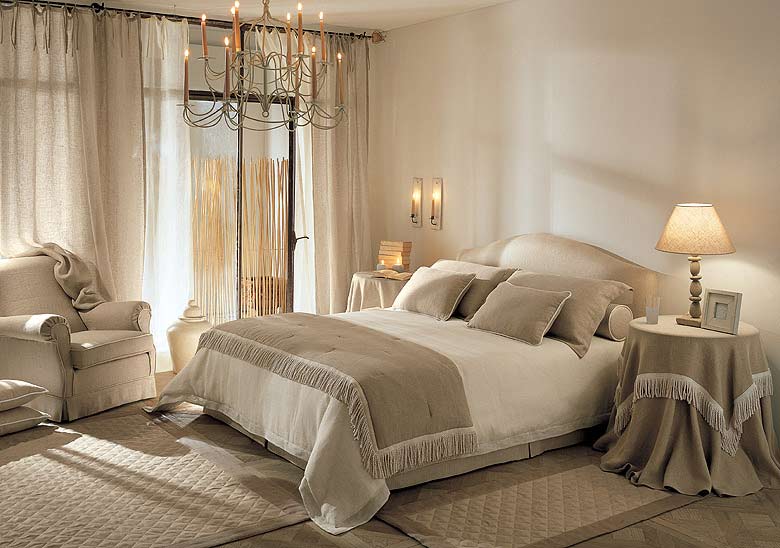 - Le lit. Le détail le plus important d'une chambre doit être non seulement beau, mais aussi confortable, offrant à son propriétaire un sommeil sain. Selon le concept intérieur, il peut être soit au centre de la chambre, soit caché derrière un écran dans le coin de la pièce. Selon la taille de la chambre et le nombre de personnes qui y passent leurs vacances, le lit peut être simple, un lit et demi, double ou non standard, réalisé sur commande.