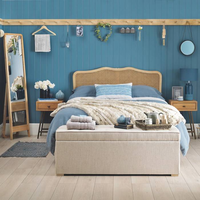 Découpez le mur derrière la tête de lit avec du papier peint de la même couleur mais plus sombre