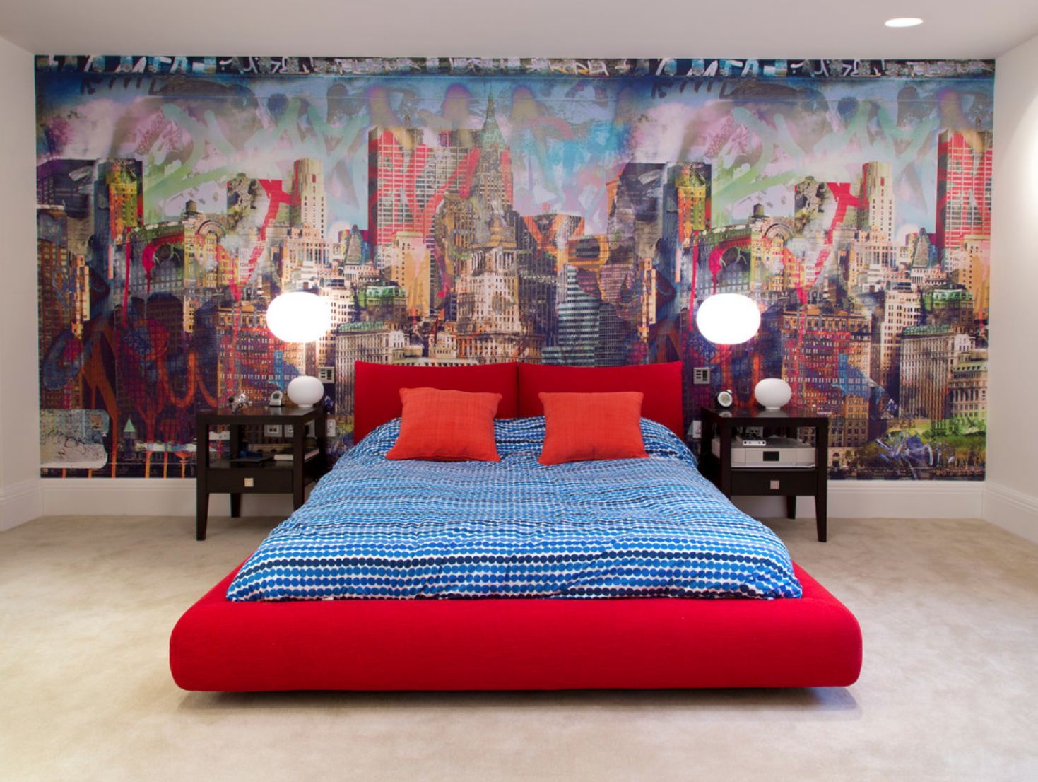 - L'option suivante est le graffiti. Seule une personne ayant certaines compétences peut gérer cela. Pour la chambre d'un garçon manqué adolescent, un tel décor de chambre fera très bien l'affaire.