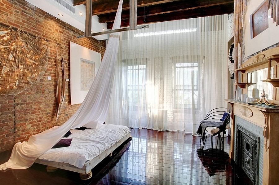 Les plafonds en tissu au-dessus du lit créent un sentiment de sécurité