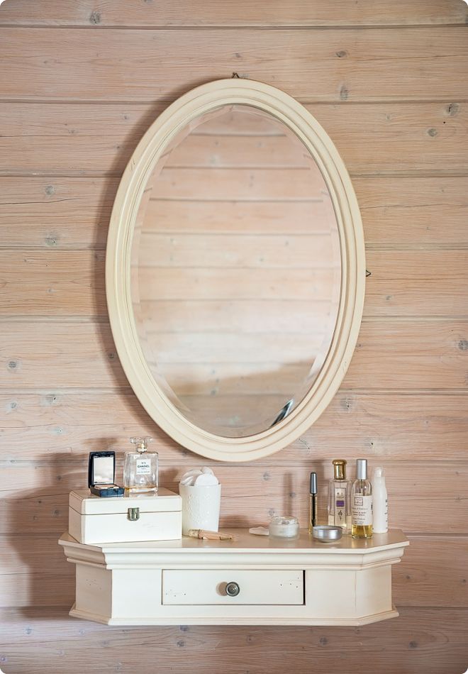 - Troisièmement, placer un miroir sur la coiffeuse de votre chambre. Une excellente option pour ceux qui veulent combiner l'esthétique de la coiffeuse et la multifonctionnalité du miroir. Avec cette disposition, il faut tenir compte du fait que pour cela un certain espace libre est nécessaire, de préférence avec une bonne lumière du jour.