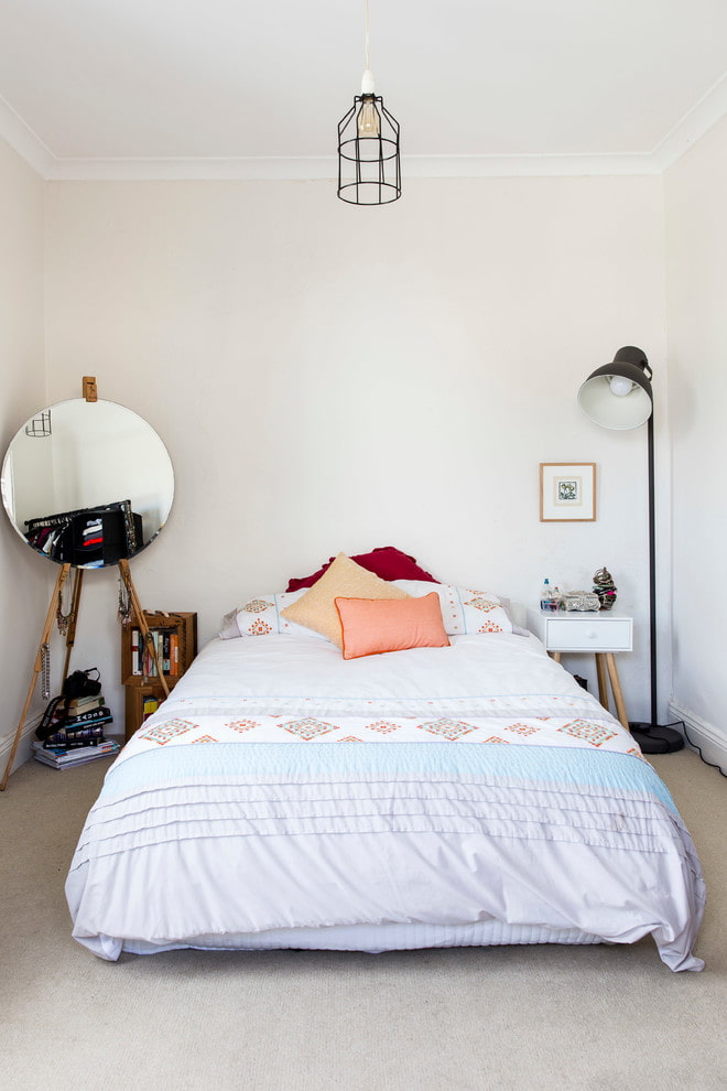 Un miroir rond à cadre fin - la solution parfaite pour une chambre dans un style minimaliste