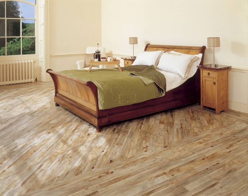 Le choix d'options pour la chambre est large et est associé à la perception personnelle des propriétaires de la couleur et du style général de la pièce. Même en l'absence d'un certain style, on peut agir en conformité avec la compatibilité du linoléum avec la couleur et la texture du papier peint, ce qui assurera l'harmonie dans l'atmosphère et des vacances relaxantes. Par exemple, sous un papier peint crème, un motif de parquet blanc convient.