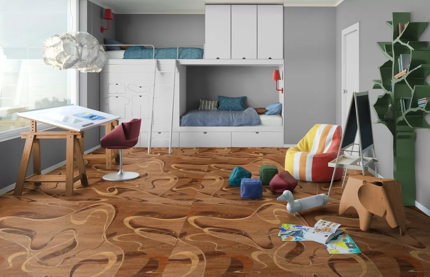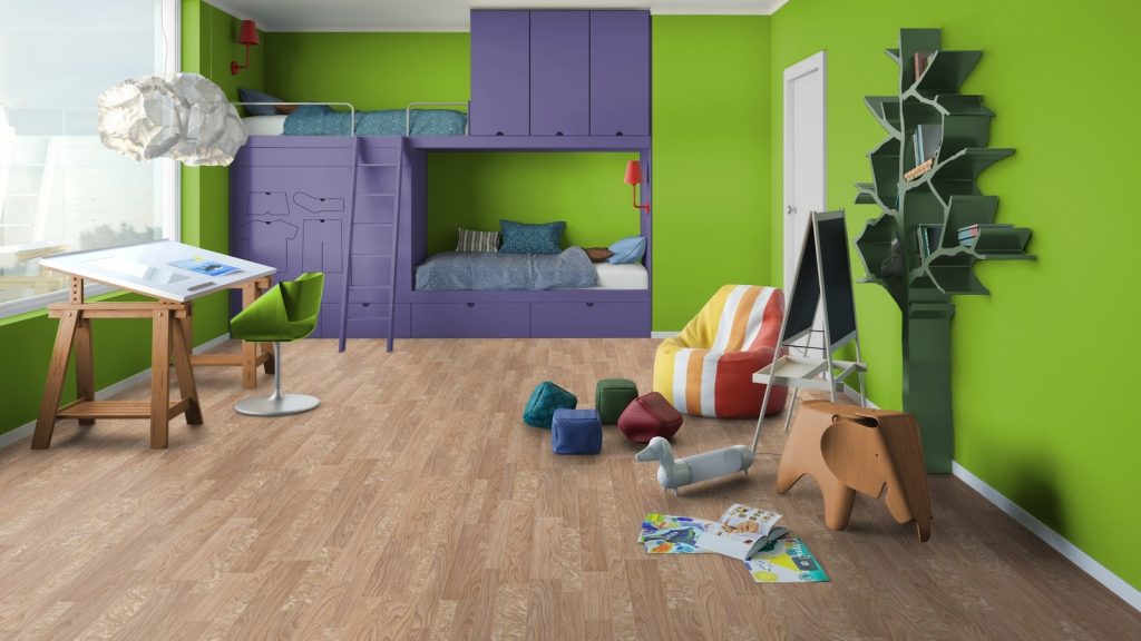 Comment choisir le linoléum pour la chambre en présence de petits enfants ou d'allergies dans la famille? Optez pour des produits naturels avec de la farine de bois à la base. Il devra être traité plus soigneusement, en raison de sa sensibilité aux dommages mécaniques, mais il est conforme à toutes les normes de sécurité environnementale.