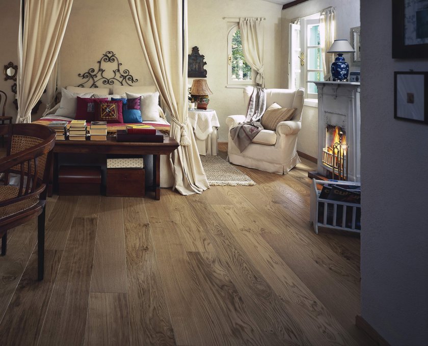Important! Pour spacieux et sans un grand nombre de meubles, des salles de solennité et d'élégance donneront au linoléum un éclat brillant.
