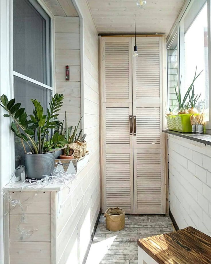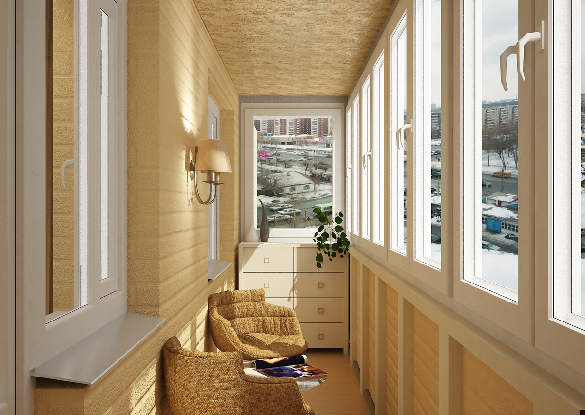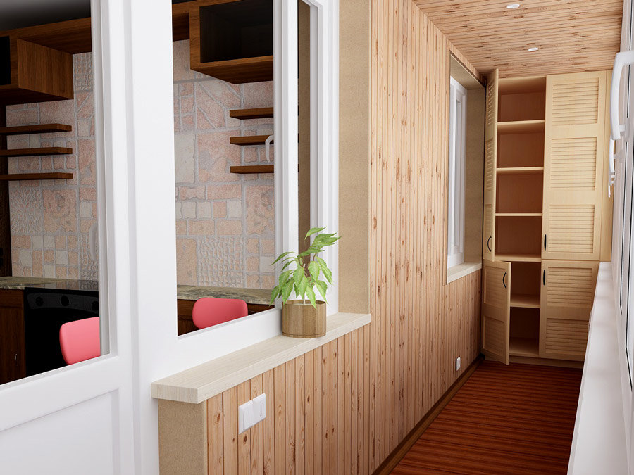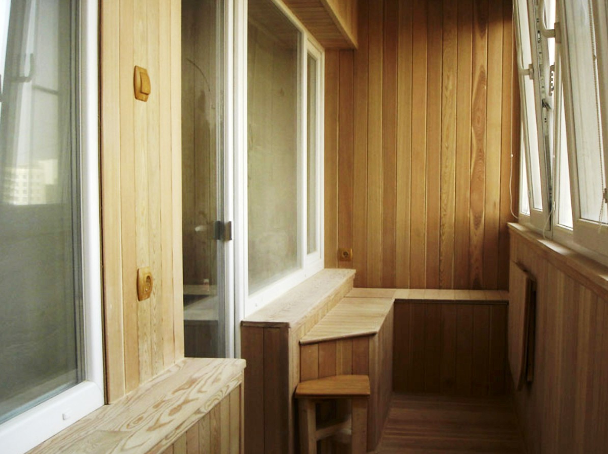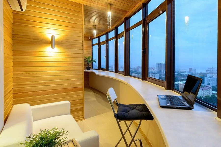 Si les fenêtres à double vitrage de haute qualité ne se tiennent pas sur le balcon, la doublure n'a qu'une fonction décorative. Mais avec un vitrage et une isolation adéquats du balcon, vous pouvez faire une salle de repos complète ou un dressing, où à tout moment de l'année une température confortable plus sera maintenue.