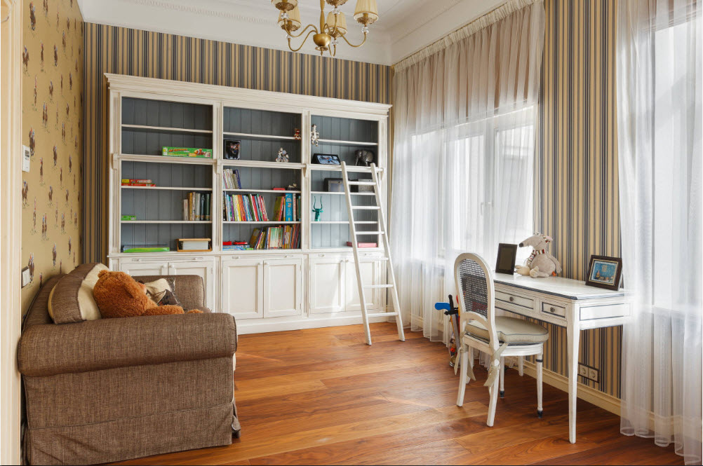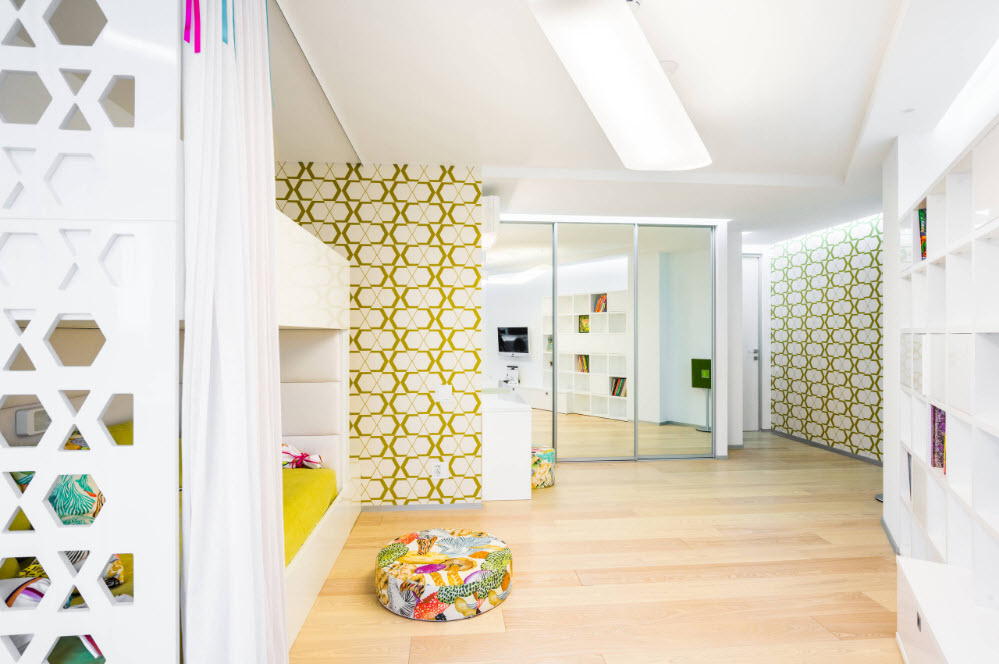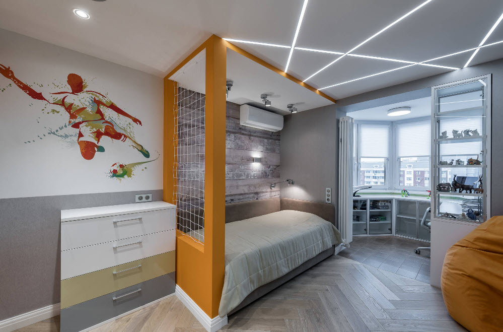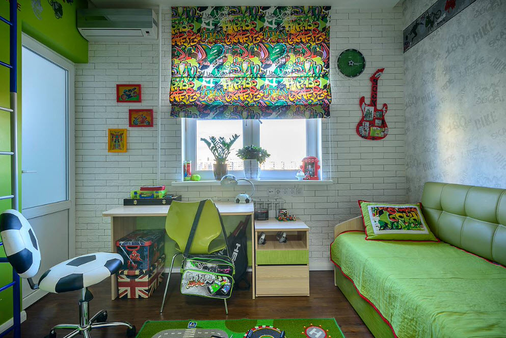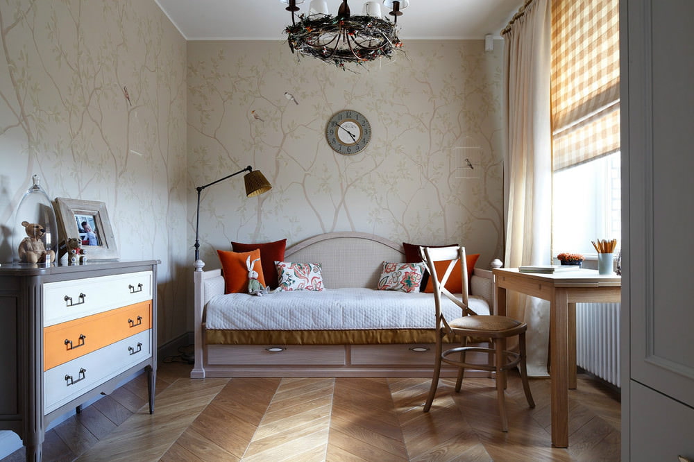 Le schéma de couleurs neutres dans la pièce est en principe plus adapté aux adolescents. Mais, s'il est dilué avec des couleurs vives, un tel intérieur deviendra intéressant pour les jeunes enfants.