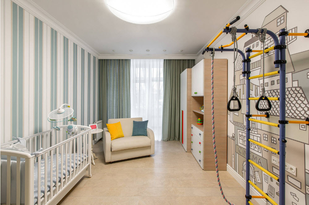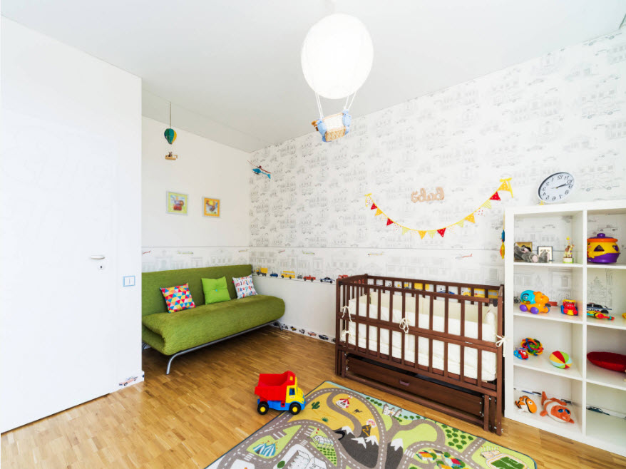 Peut également être appliqué du papier peint avec des photos pour les murs de la crèche du garçon. L'image peut être différente, selon les préférences individuelles de l'enfant. Il peut s'agir des héros de vos films ou jeux préférés, d'histoires sportives ou d'abstraction.