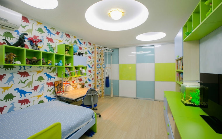 De plus, en raison de la présence de nombreux pores, le mur recouvert de papier peint respirera bien, ce qui contribue à la formation d'un microclimat sain dans la chambre des enfants. Mais, il convient de noter que les papiers peints bon marché peuvent être soumis à une décoloration intense, qui doit être prise en compte, surtout lorsque les fenêtres font face au côté ensoleillé.