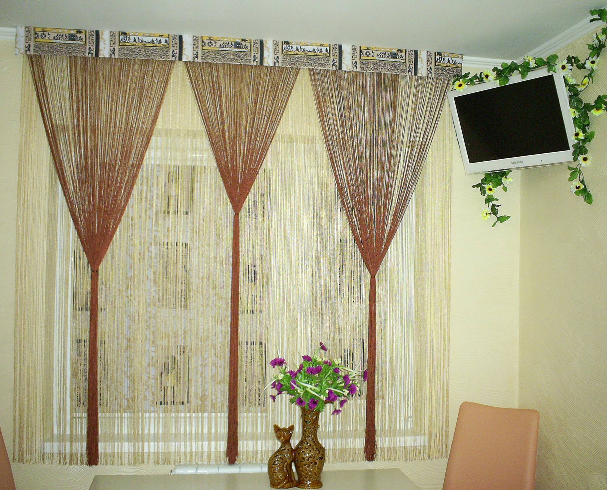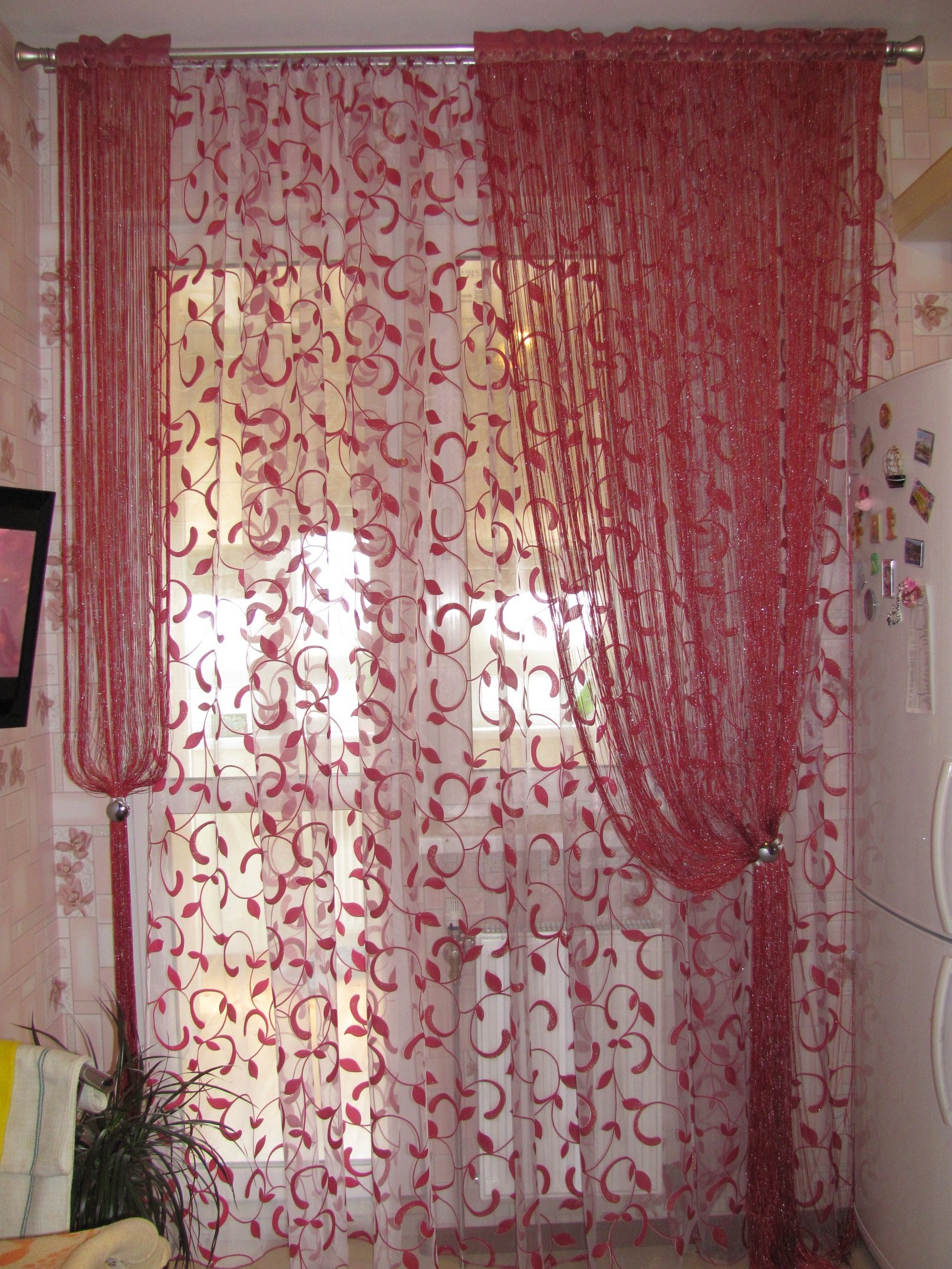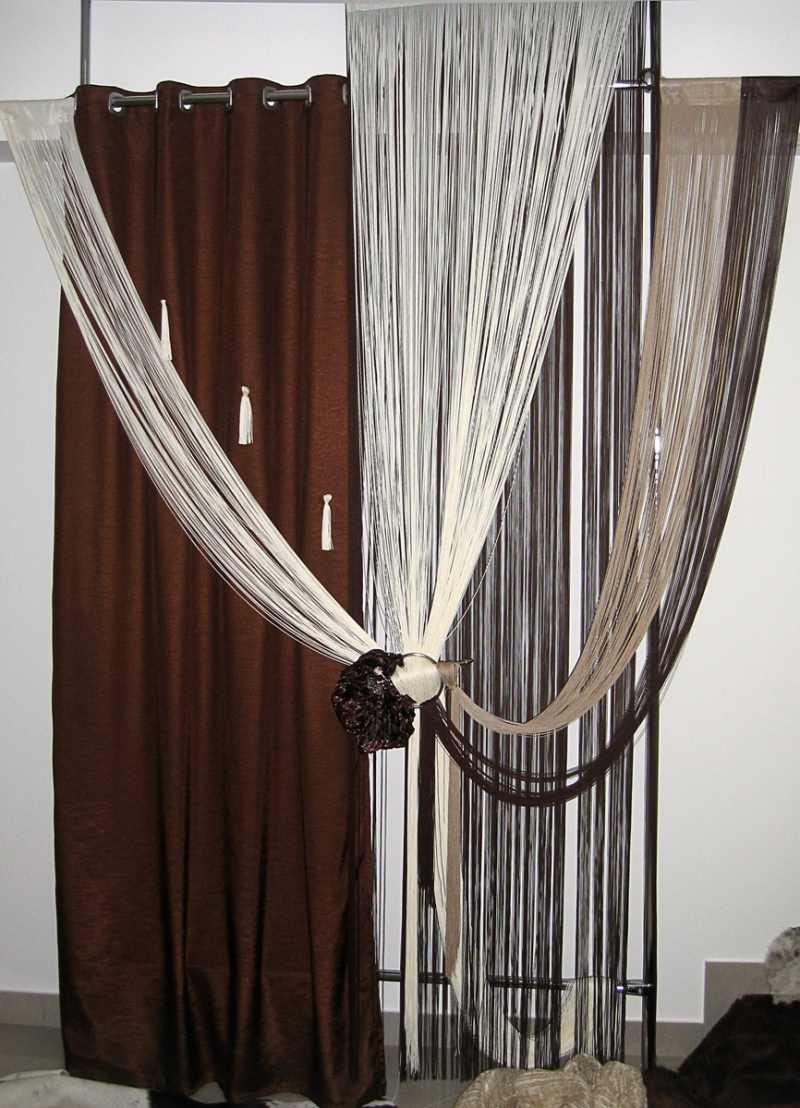 - Fil Cette version des rideaux peut être créée de vos propres mains ou sur commande afin de décorer magnifiquement les rideaux suspendus dans la cuisine. Pour cela, le fil et les accessoires nécessaires sont sélectionnés.