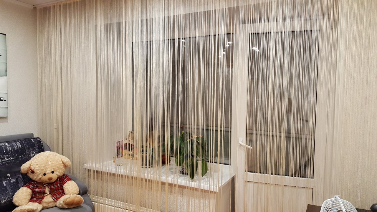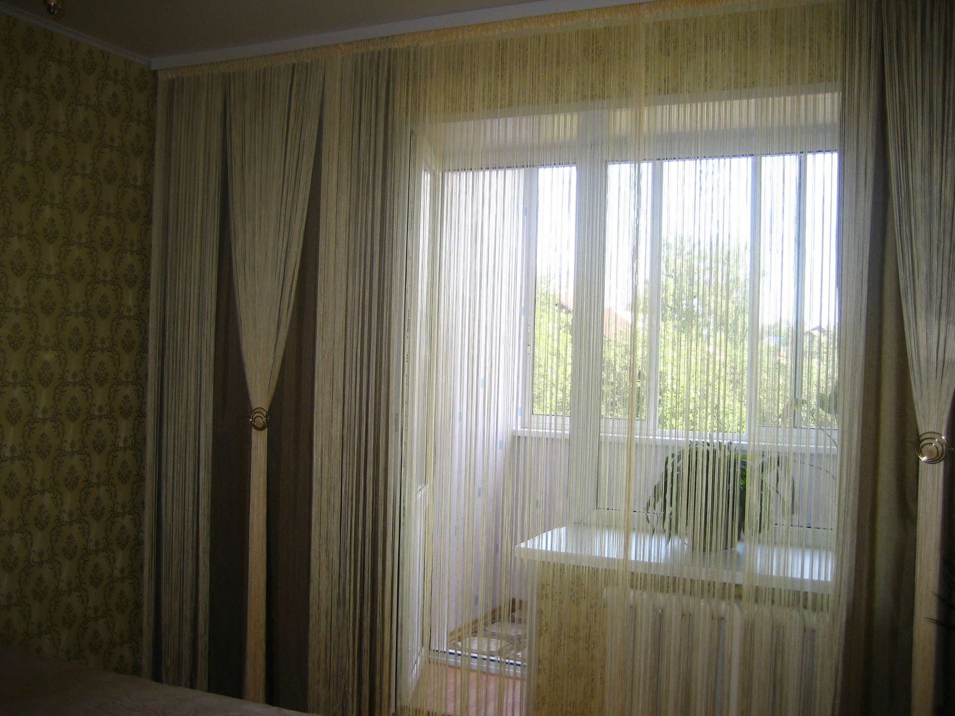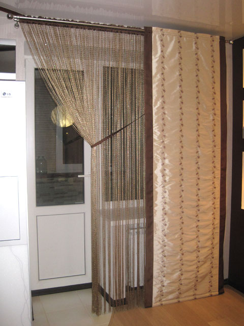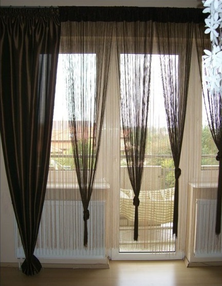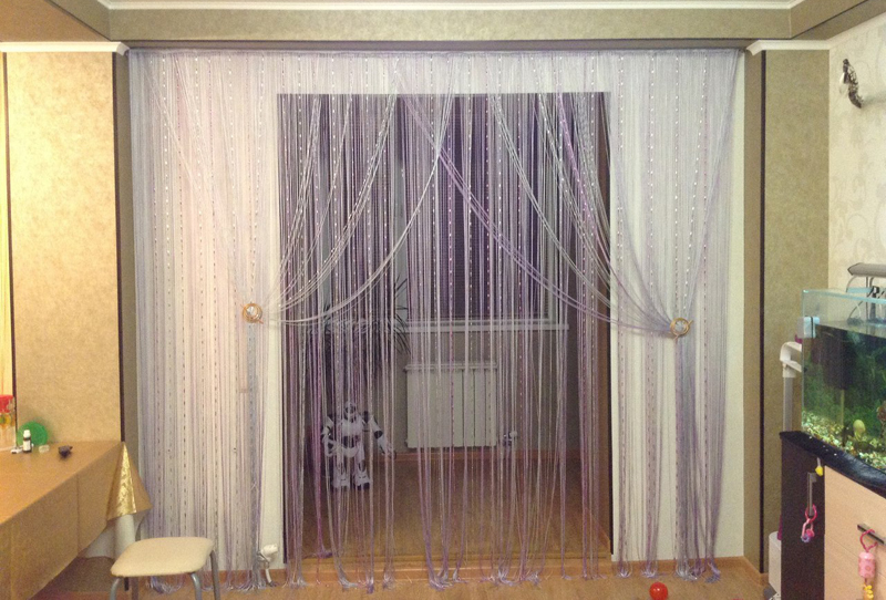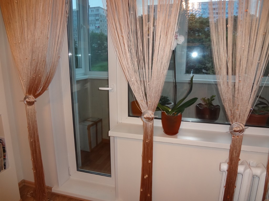 Pour sortir sur le balcon, vous n'avez pas besoin de déplacer tout le rideau - à travers de longs fils fins, il est pratique de sortir même avec les mains occupées.