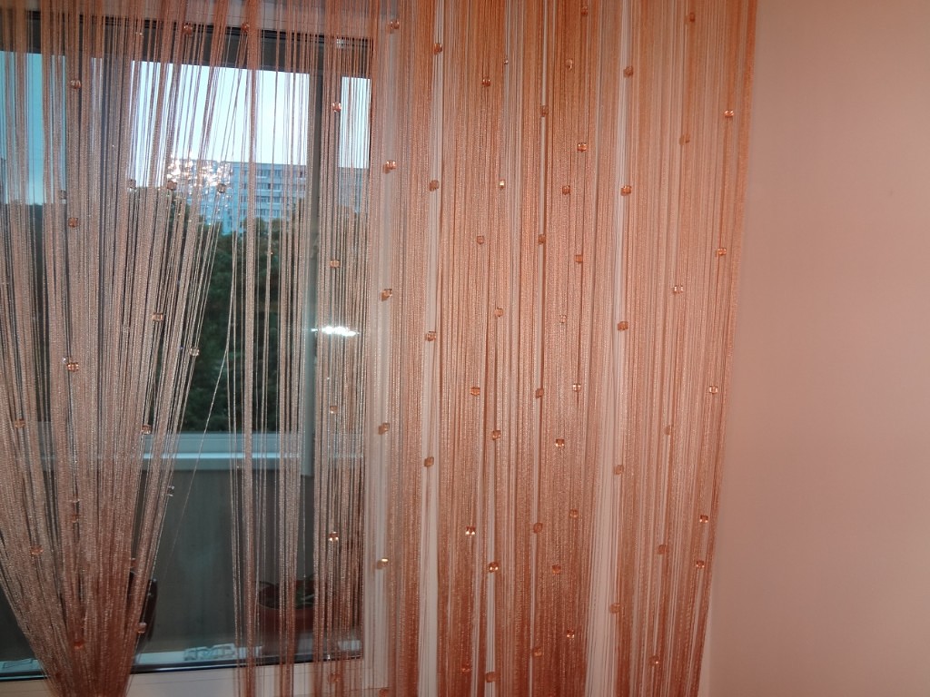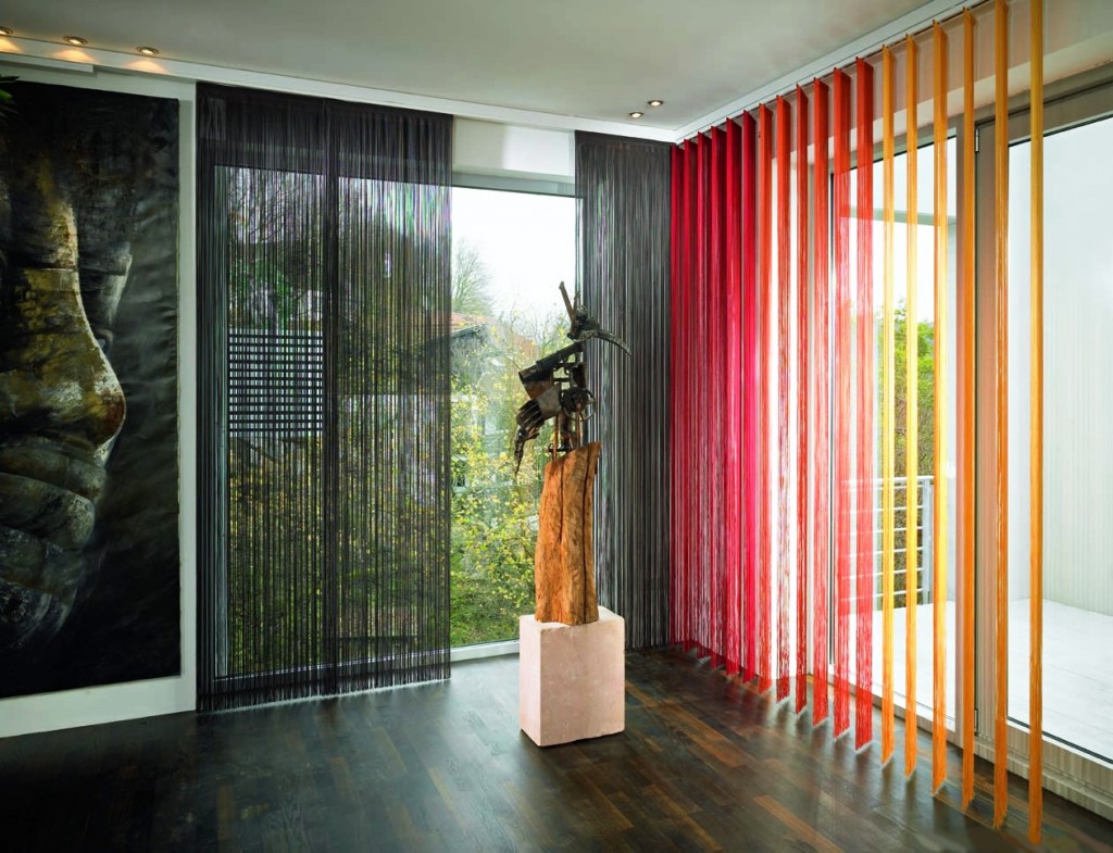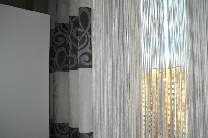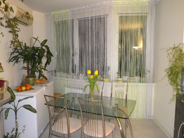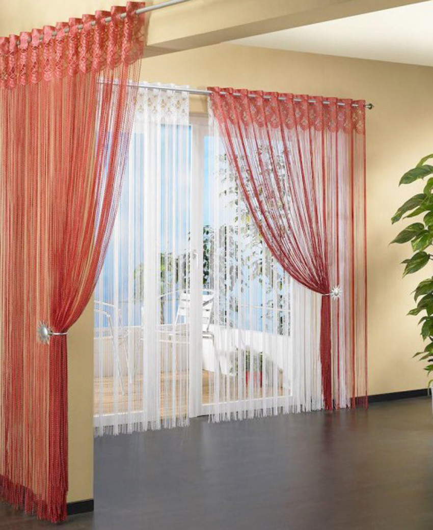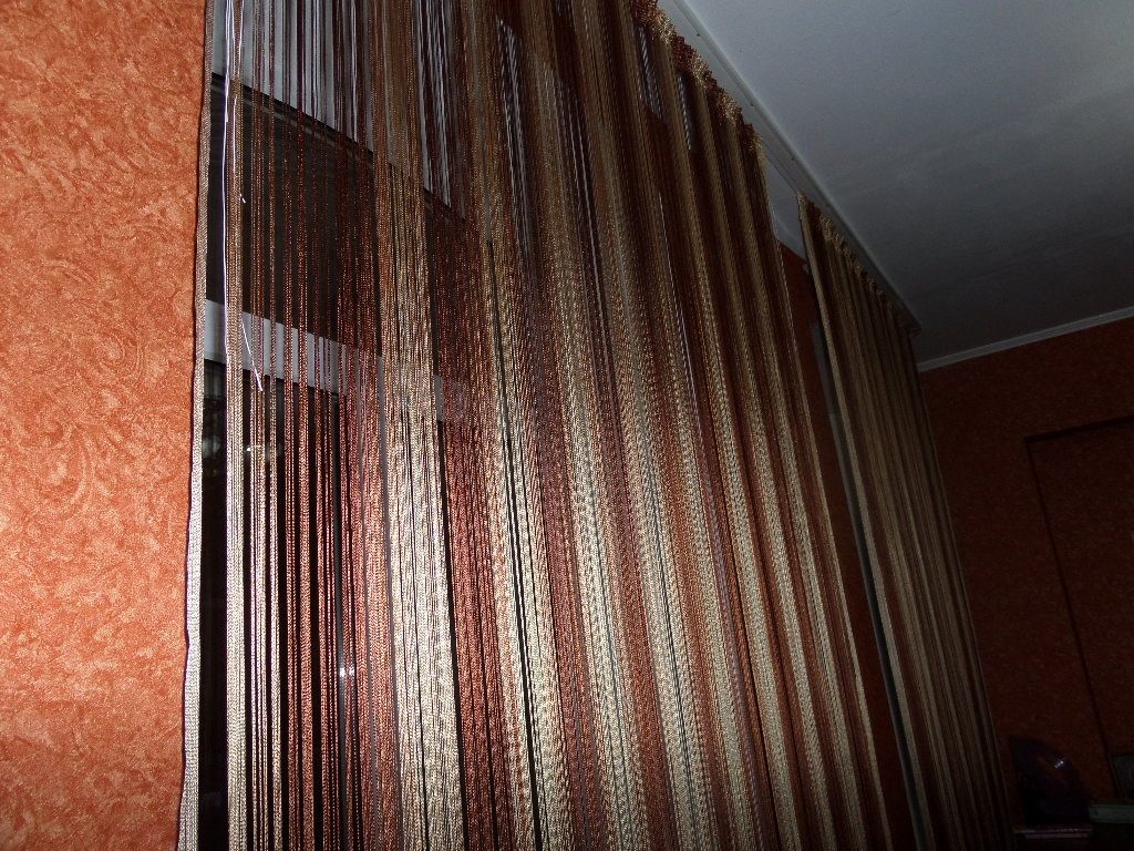 Pour sortir sur le balcon, vous n'avez pas besoin de déplacer tout le rideau - à travers de longs fils fins, il est pratique de sortir même avec les mains occupées.