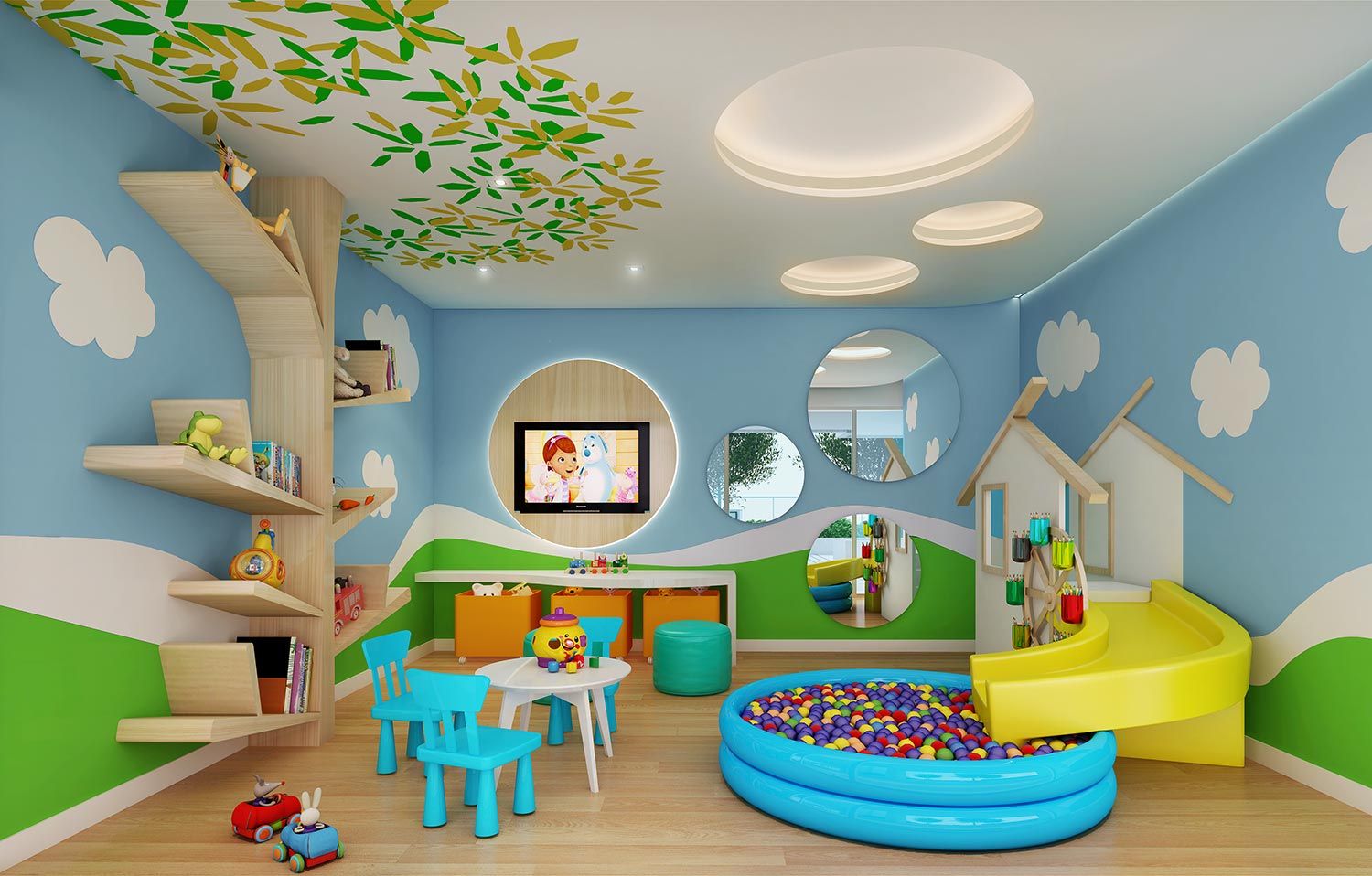 La salle de jeux doit avoir des couleurs pastel et lumineuses.