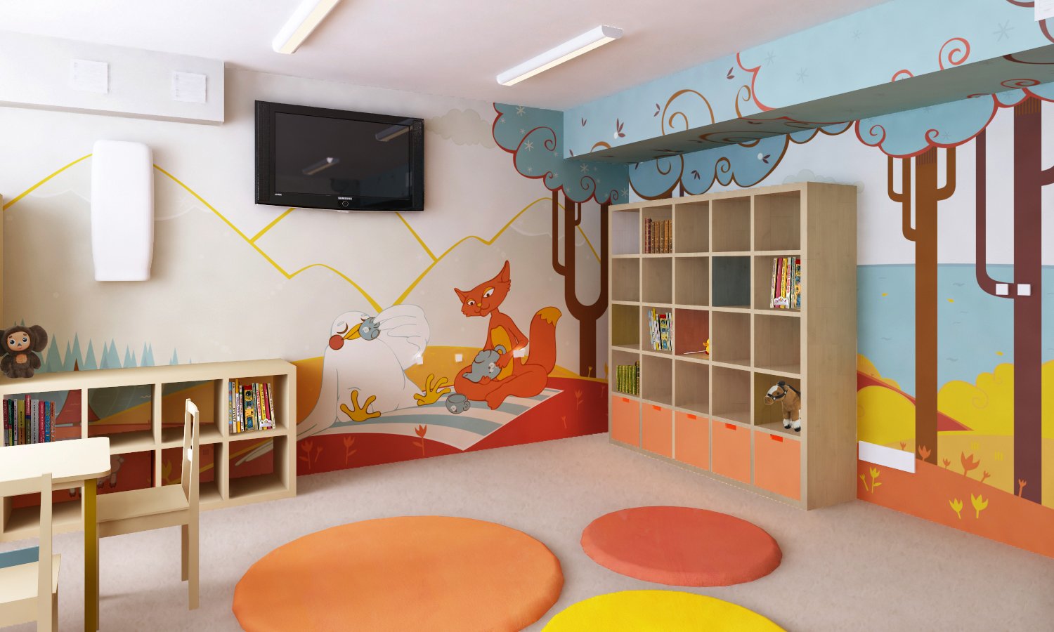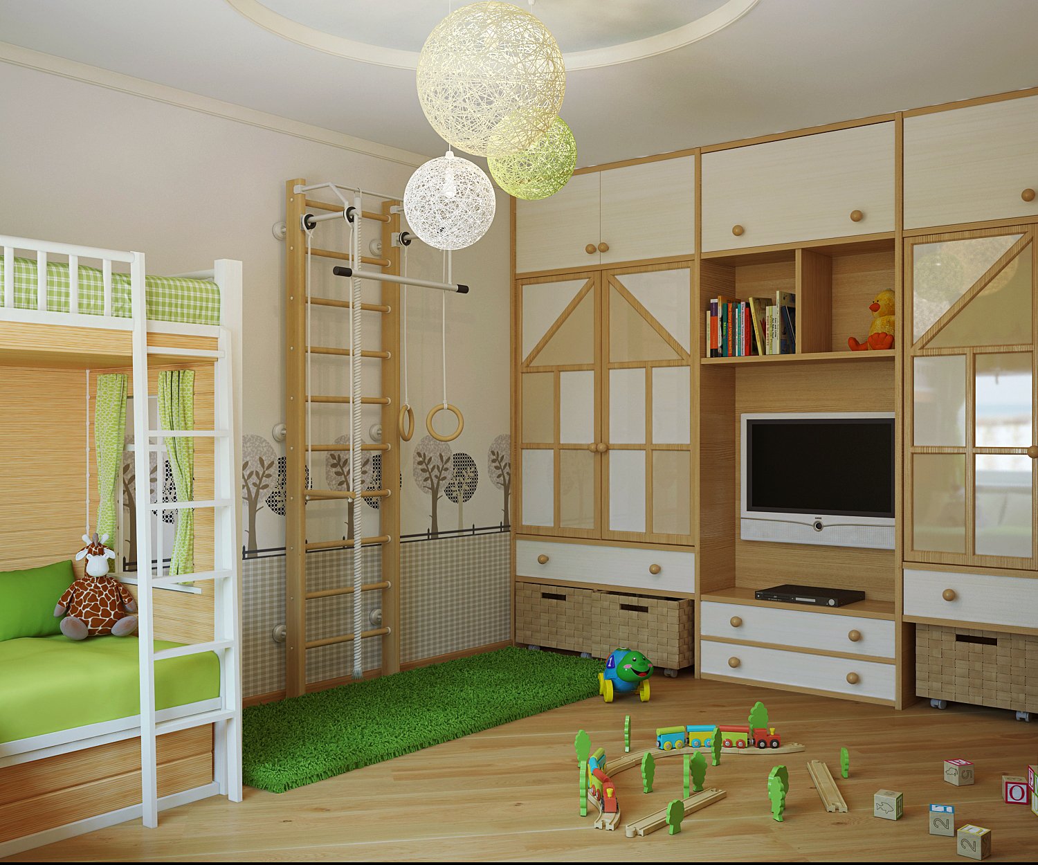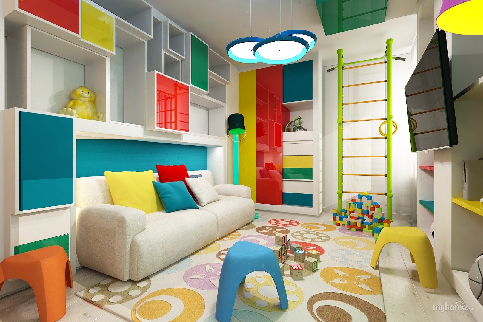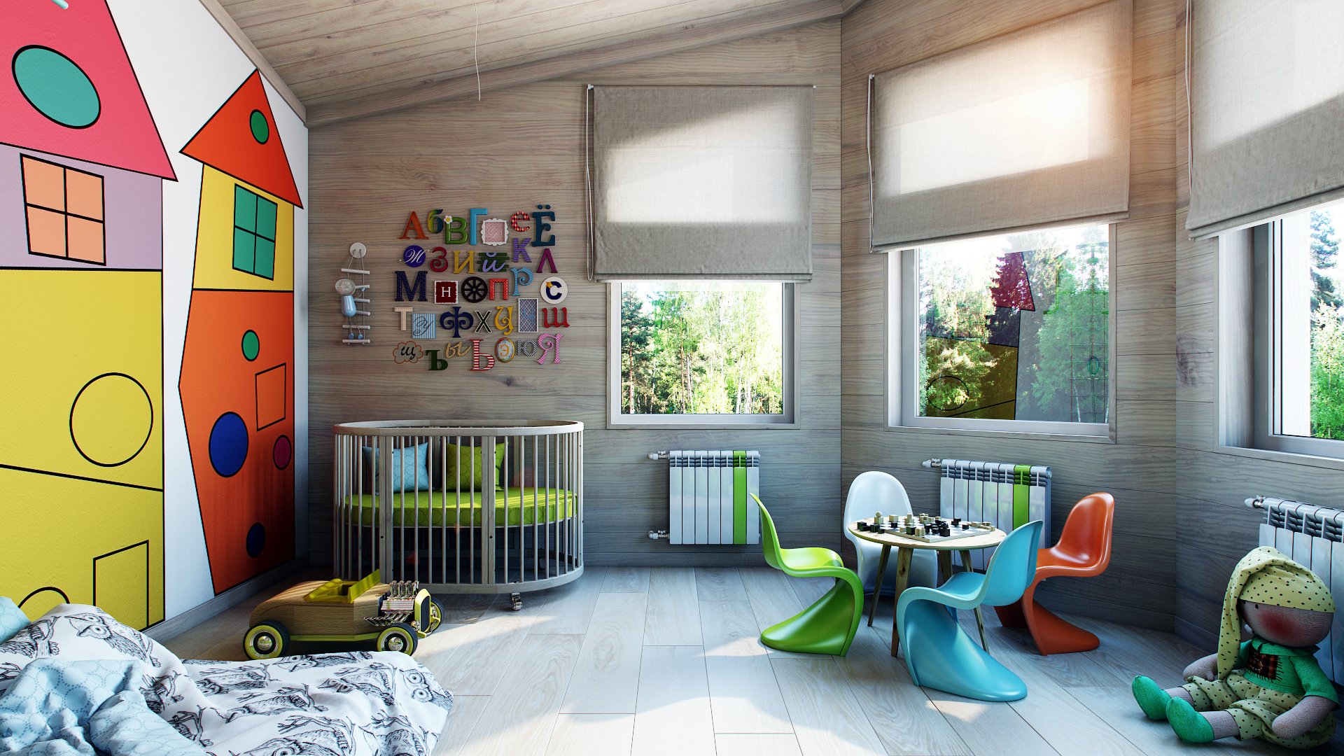 En entrant dans la salle de jeux, l'enfant sentira que cette pièce est conçue spécialement pour lui.
